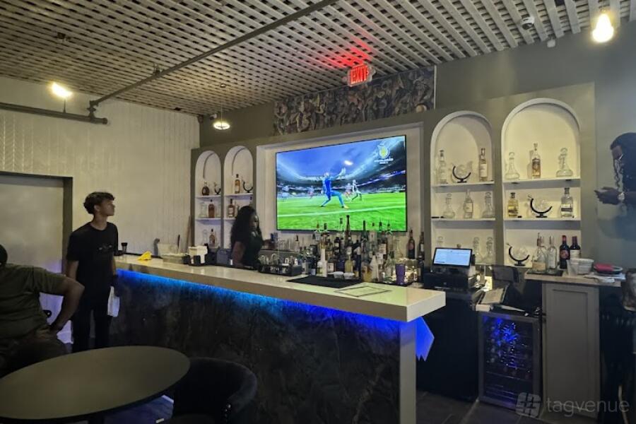 Skyvibe Restaurant and Lounge's main bar exudes modern elegance, featuring an illuminated countertop, top-shelf spirits, and expertly crafted cocktails. With chic seating and a vibrant ambiance, it’s the perfect spot for lively gatherings or intimate evenings