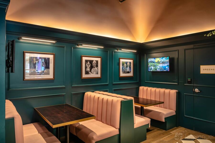 Tucked away beside The Bunker, you'll find another smaller group area, The Snug. From here you’ll have a great vantage point overlooking the Clocktower Course. The tropically flamboyant Snug seats 20 guests and is a great partner to The Bunker if you have a larger group and want to combine the two.