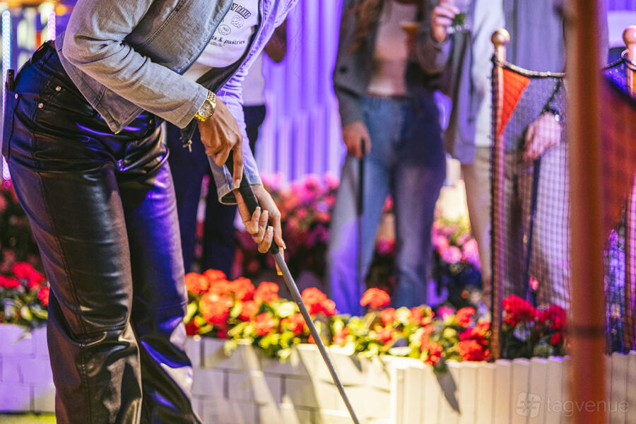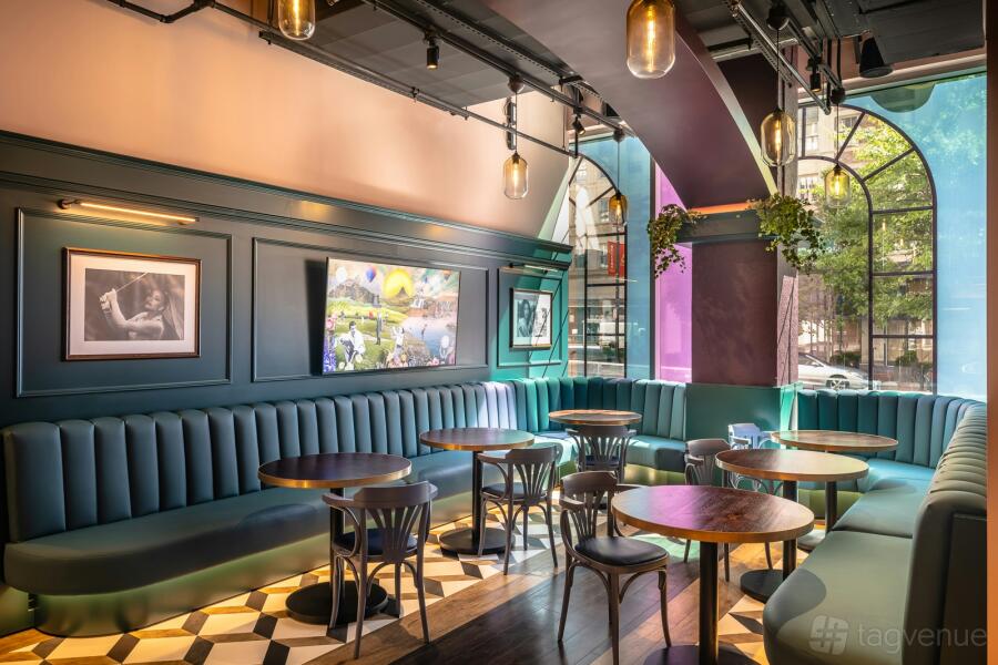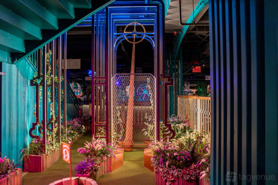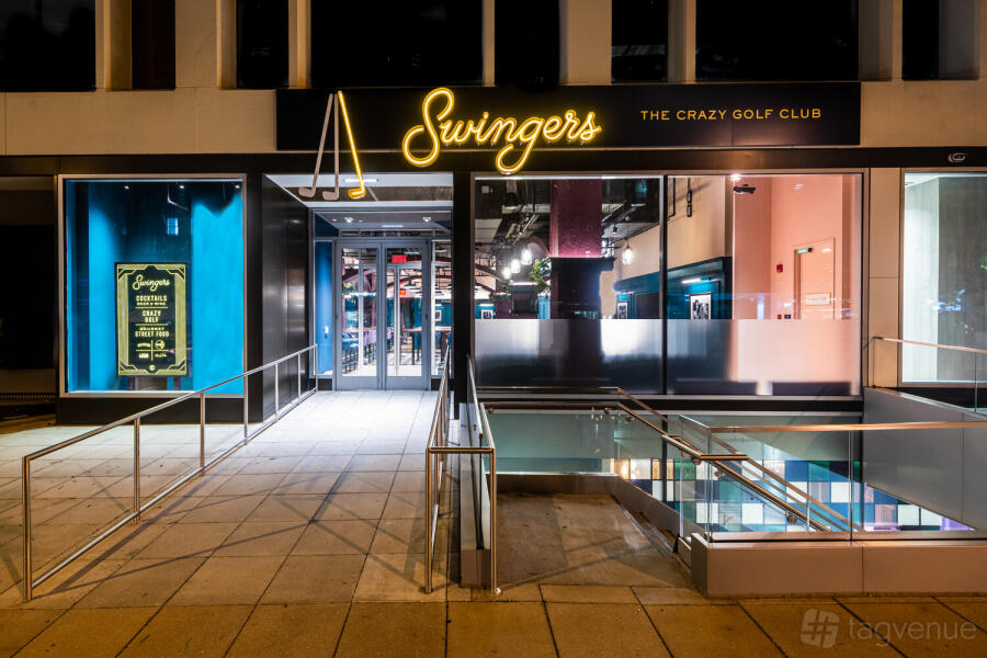 Swingers Dupont Circle in Washington, D.C., offers a unique blend of entertainment and socializing with its 1920s-inspired English golf clubhouse vibe. The venue features beautifully designed mini golf courses, stylish cocktail bars, and a variety of gourmet street food vendors.