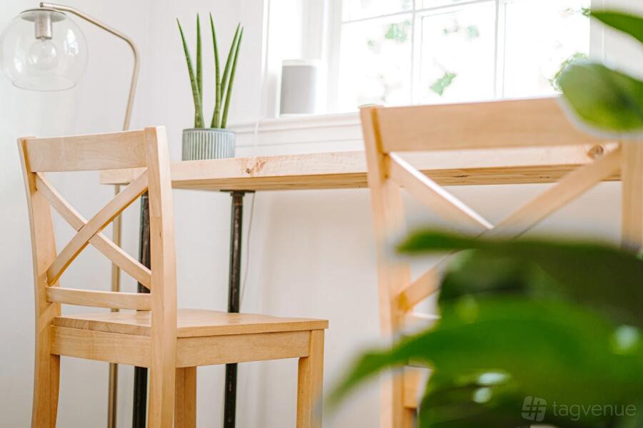 Flourish is a cosy, plant-filled space that feels like a creative hangout spot. The space has got an open main floor with warm wood details, there are tons of natural light, and over 300 plants that give it a fresh, calm vibe. Flourish is a bright, plant-filled space with a mix of cosy and functional areas.