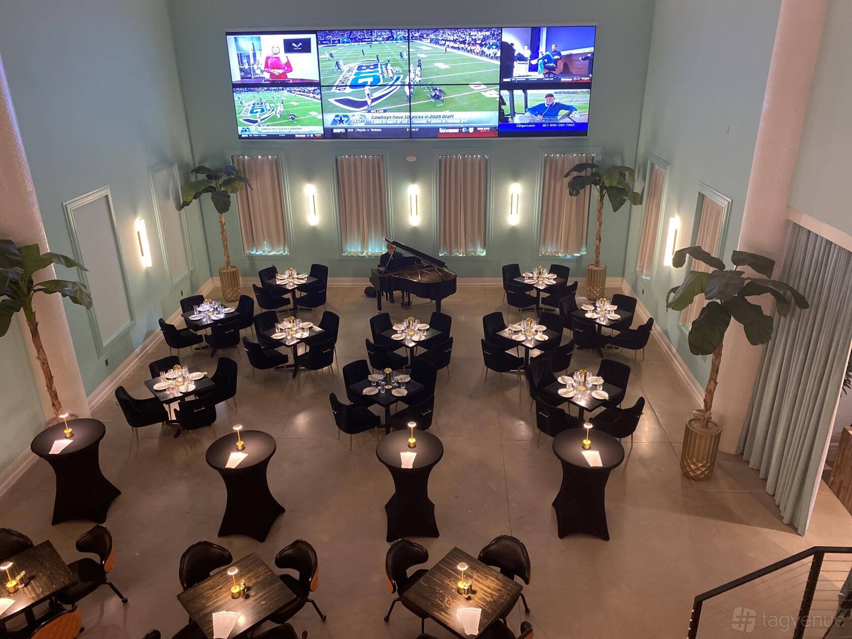 The largest single space of the Caspian, this two-storied ballroom is complete with vaulted ceilings, a private mezzanine, a main 800-inch high-definition video wall, and its own backlit bar.