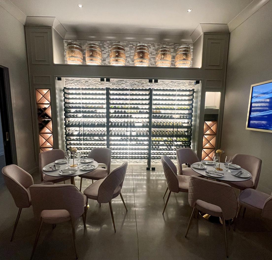 This moody and exclusive space is ideal for tasting, executive dining, and or cigar-friendly gatherings up to 12 people. This hybrid space can also be reserved separately or as one.