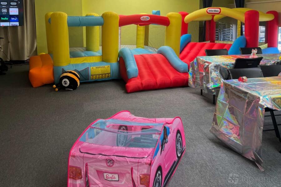 Our furniture is customizable and can be rearranged to suit different events. There is also the possibility of adding kids' toys, games, and decorations for any type of event. The atmosphere of our space is simple and it can accommodate both adults and children. The decor is minimal and can be adapted for different uses.