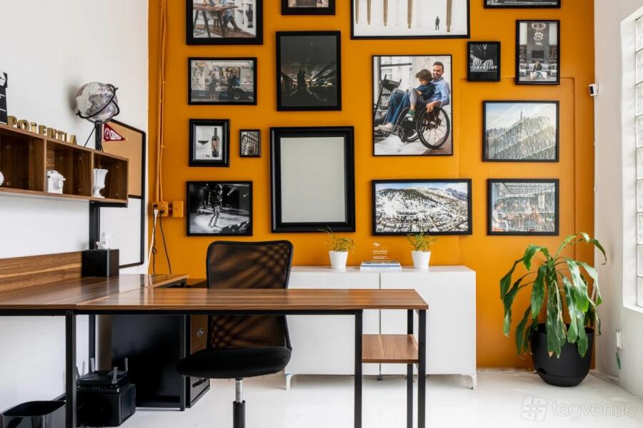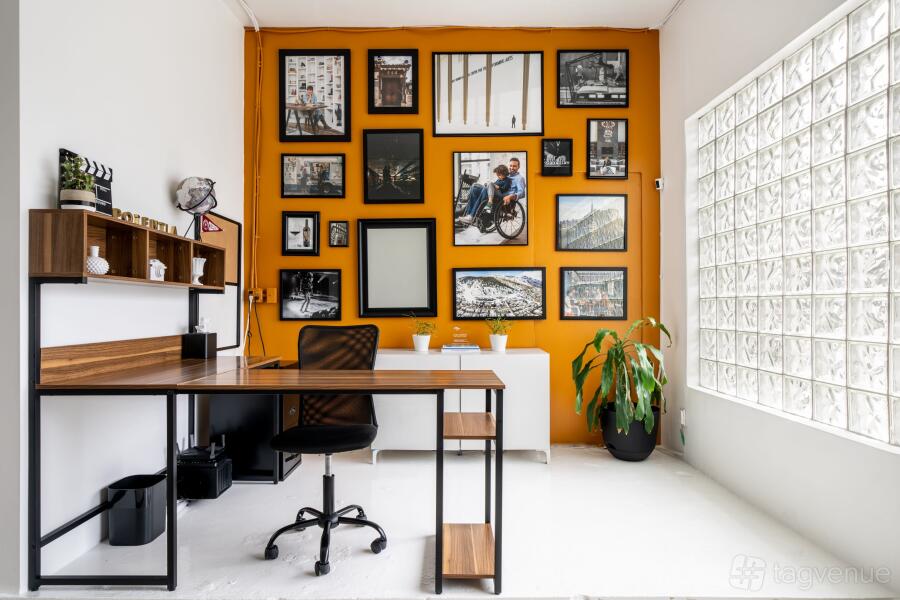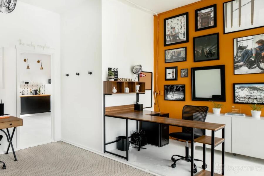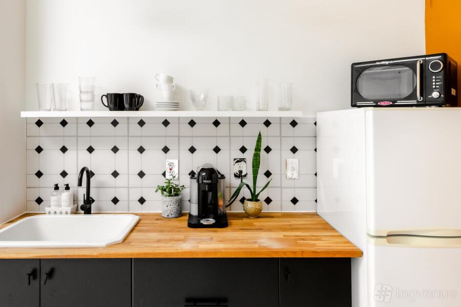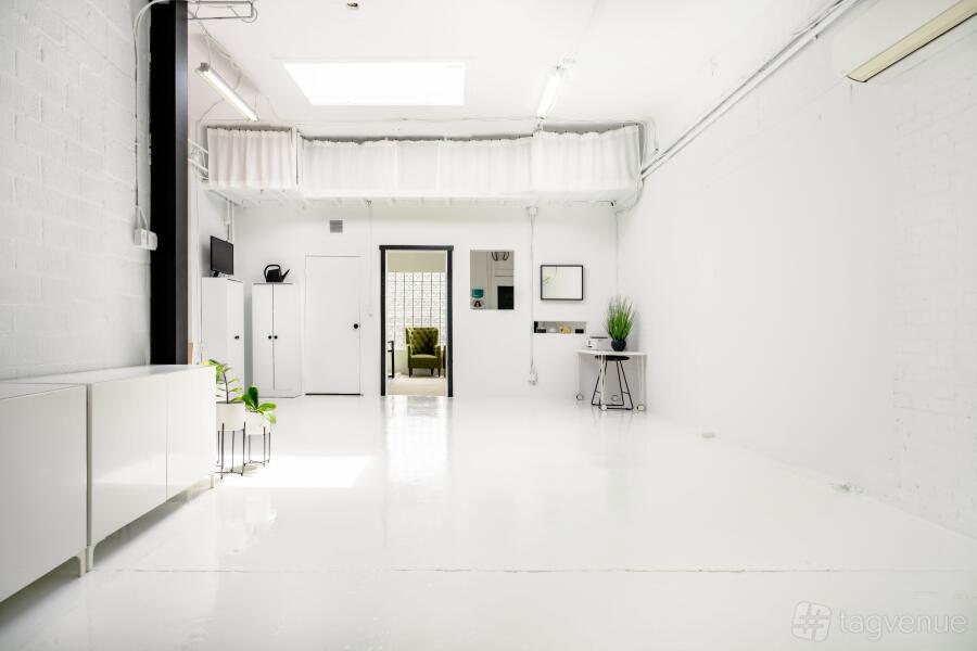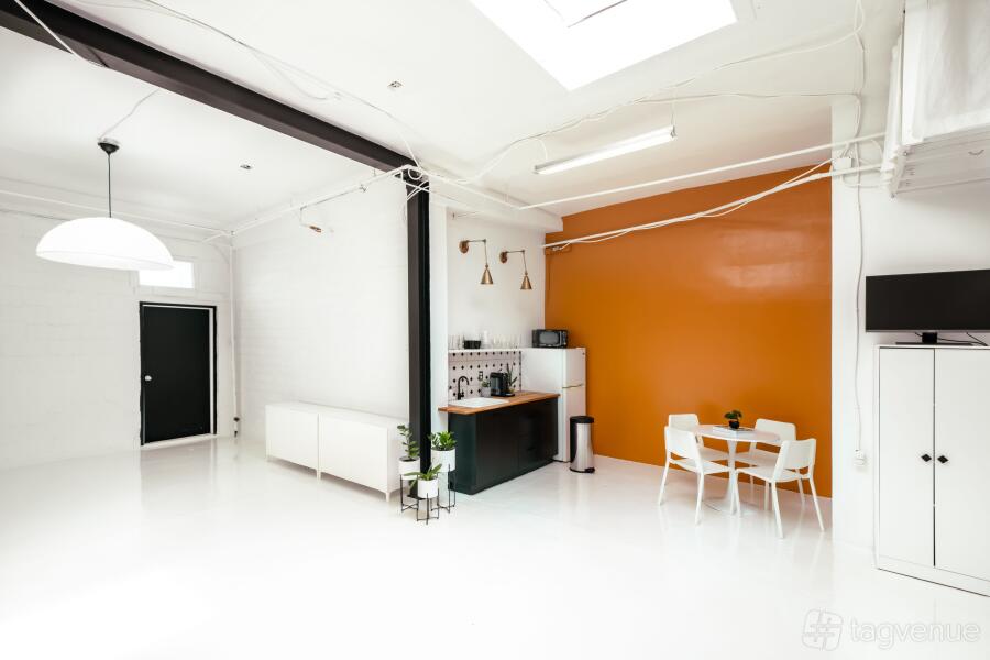 This studio is vast and easily adaptable to any style or theme. The room features, among other things, a kitchenette with a dining table at one end, while the other side converts into a comfortable office space or cozy living room setting. Whether it's for a workshop, content shoot, or that special event you have planned, Torch Studio houses you perfectly to bring your vision into reality.