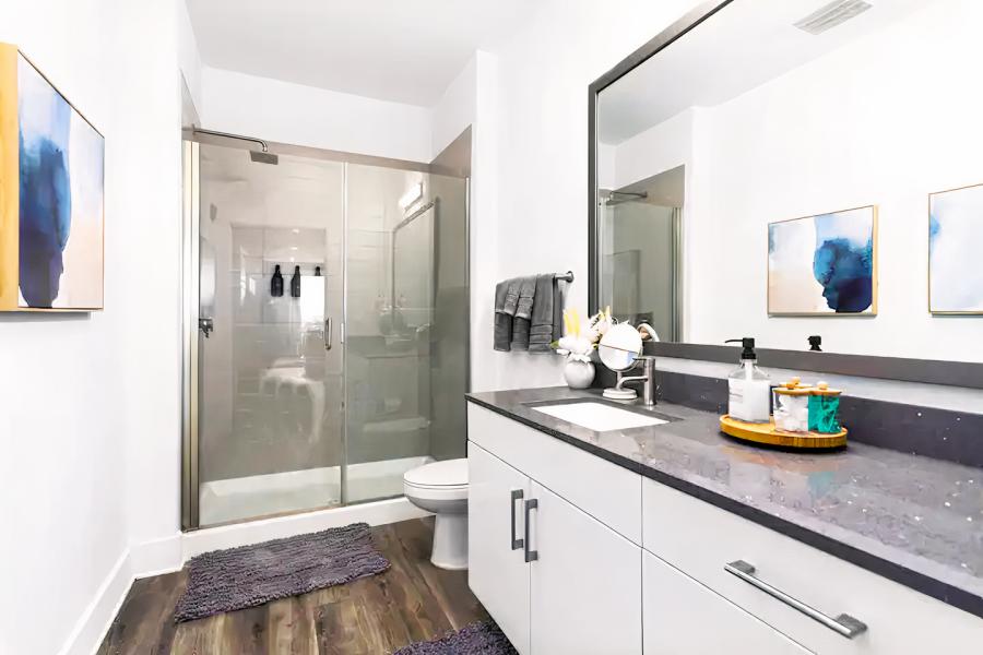 Equipped for both leisure and corporate needs, The Midnight Oasis offers a fully-equipped gourmet kitchen, state-of-the-art amenities, and expansive bathrooms attached to bedrooms dressed with luxurious king and queen beds. Whether it's for professionals seeking a premium living experience or families desiring both excitement and tranquility, this apartment provides a premier experience backed by a renter’s agreement & security hold to ensure your stay is nothing less than extraordinary.