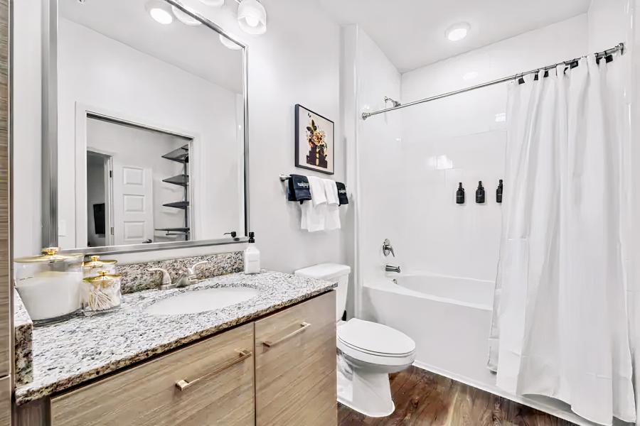 Beyond the bedrooms lies a fully stocked kitchen, ready for culinary exploits, and a public rec room that promises spirited play and connection. Whether cooling in the pristine pool or imbibing atop the rooftop bar against a backdrop of city lights, The Regal Noir is not just a stay – it's a comprehensive experience where luxury meets the charm of Decatur.