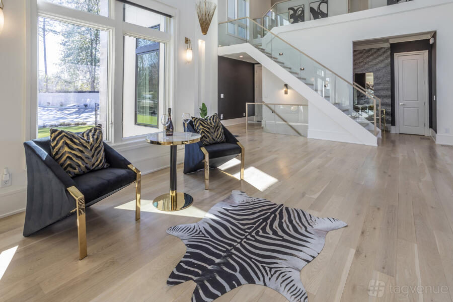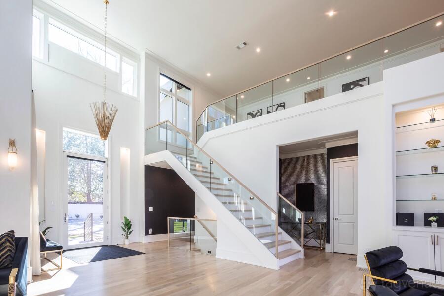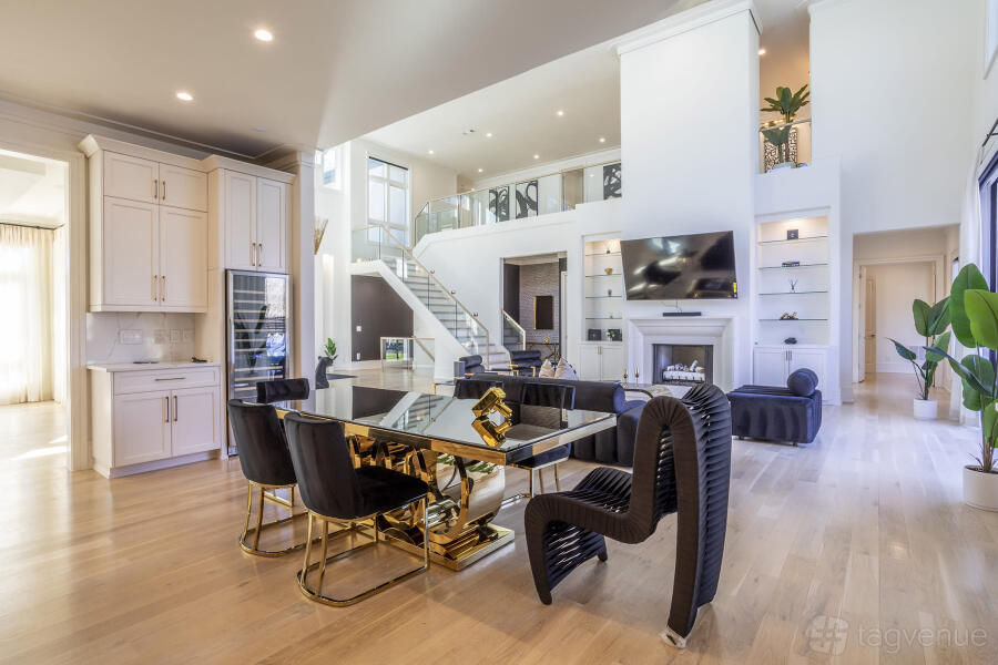 The estate offers a spacious layout that merges indoor and outdoor living. Outside, there’s a large private pool, lush gardens, and a patio with comfortable seating and a barbecue area, ideal for entertaining. Enjoy the convenience of a fully automated smart home system, security cameras, and a vast backyard. Other highlights include a loft, media room, office, dance studio, sauna, and a three-car garage with an electric car charger.