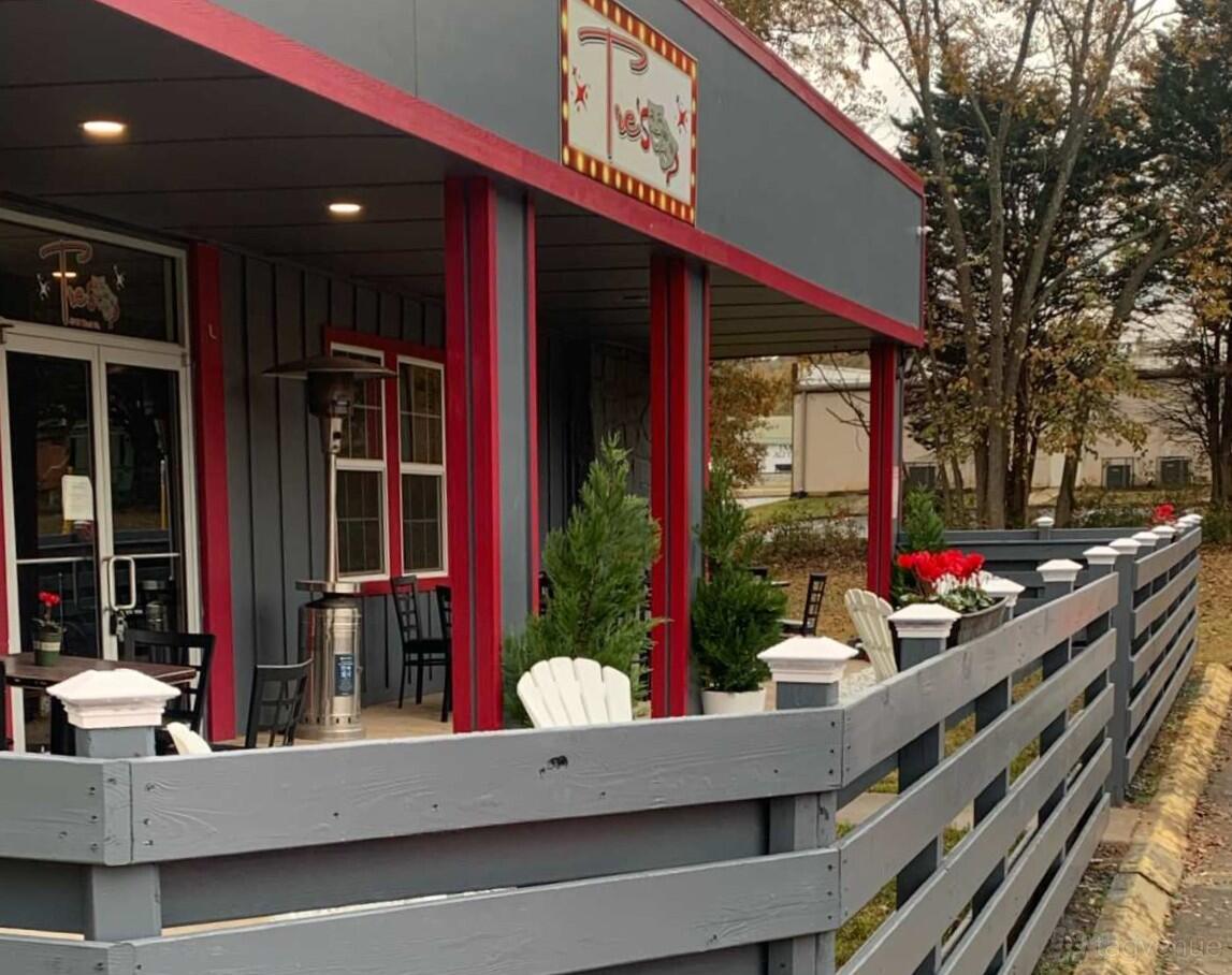 Inside, there's a bar with various drinks. And outside, there's a large grassy area perfect for outdoor weddings or picnics. This space gives you a beautiful green setting and cozy indoor space that can be decorated in many ways to fit your event.