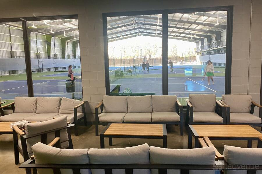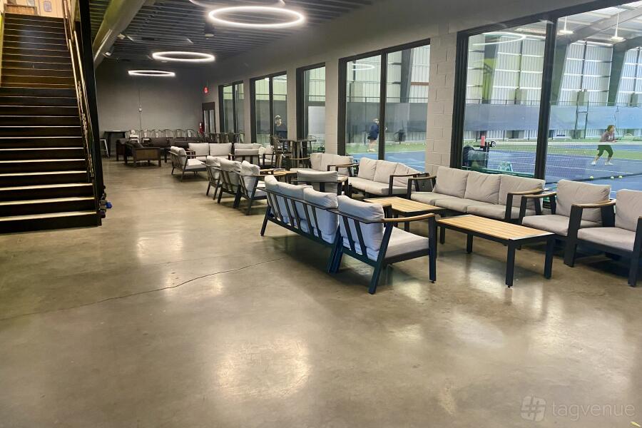 On the main level, there are men's and women's locker rooms, and upstairs, you'll find the Courtside Restaurant and full bar, and the private players' lounge with a pool and a ping-pong table. Our balcony and catwalk offer views of the outdoor courts, perfect for capturing shots or hosting events. If you're looking for a dynamic location for filming or a venue for an exclusive event, ITA Atlanta is the perfect setting.