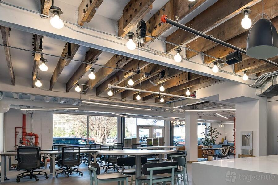 Flexible Workspace like first-come-first-served desk seating and open common areas.