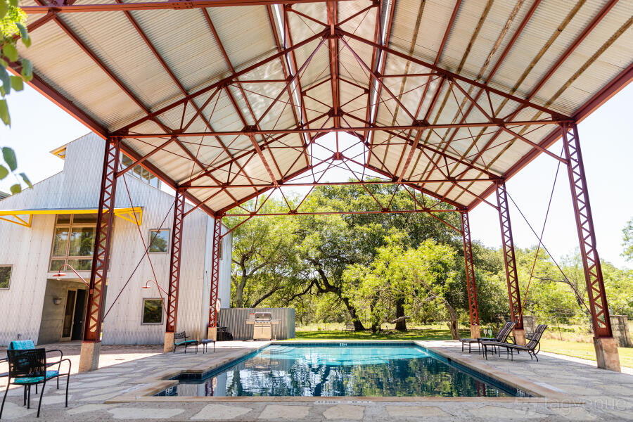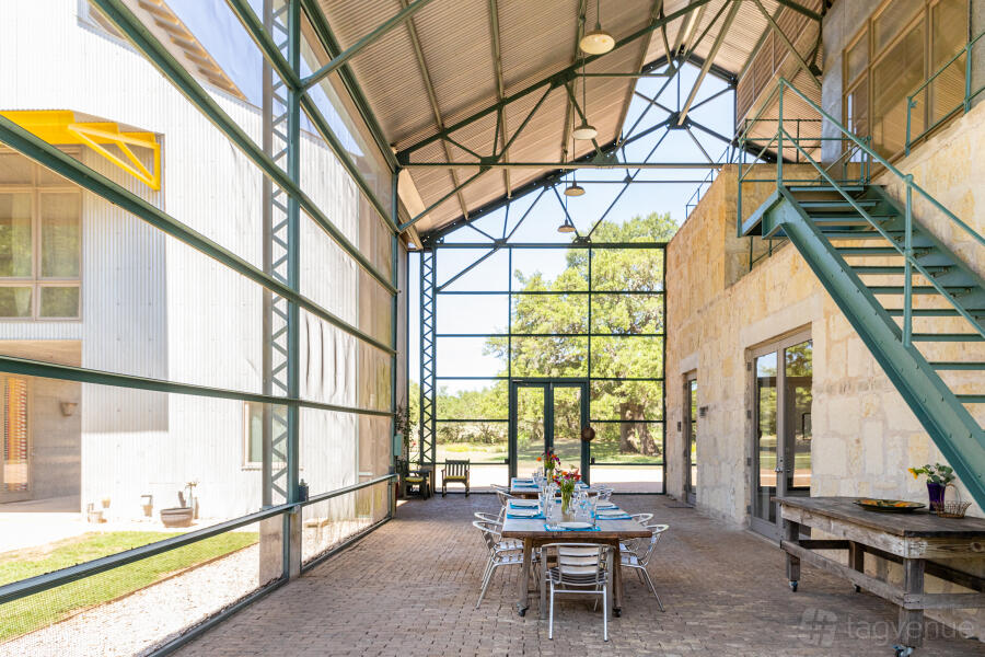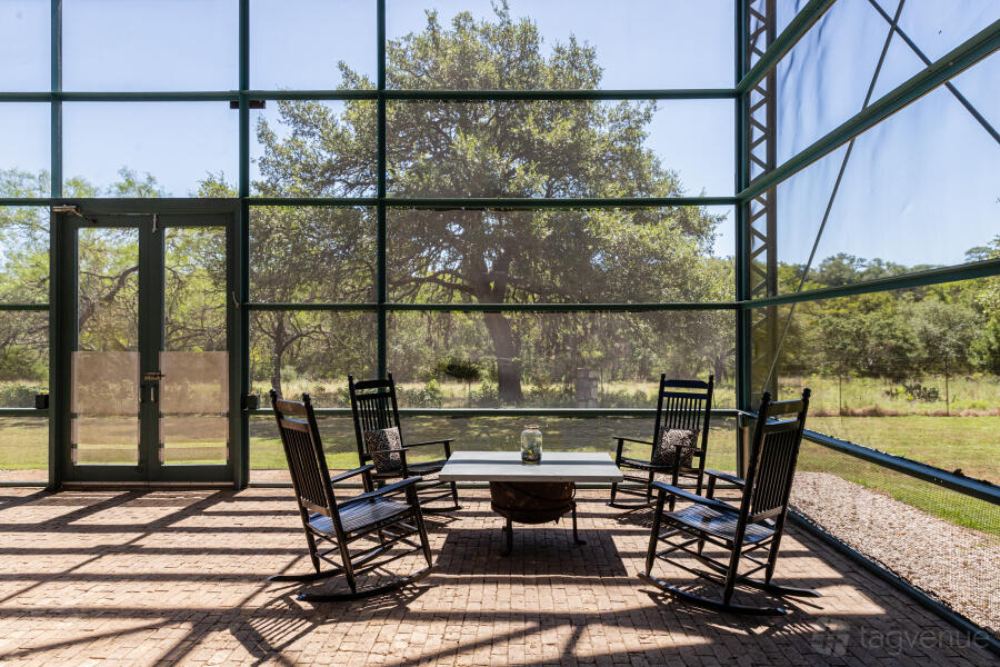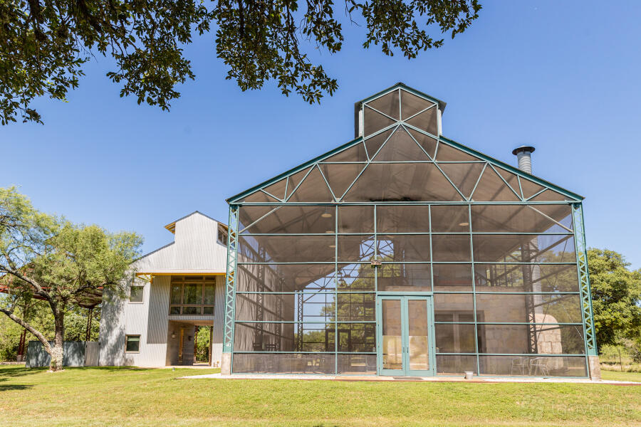 With dramatic and varied spaces perfect for entertaining, this is a truly unique getaway setting for a for a weekend, a week, or more. Relax in "the world's largest screened-in porch," take a dip in the covered outdoor pool, read a book on one of several shaded patios, or on a hammock hanging in a grove of trees.