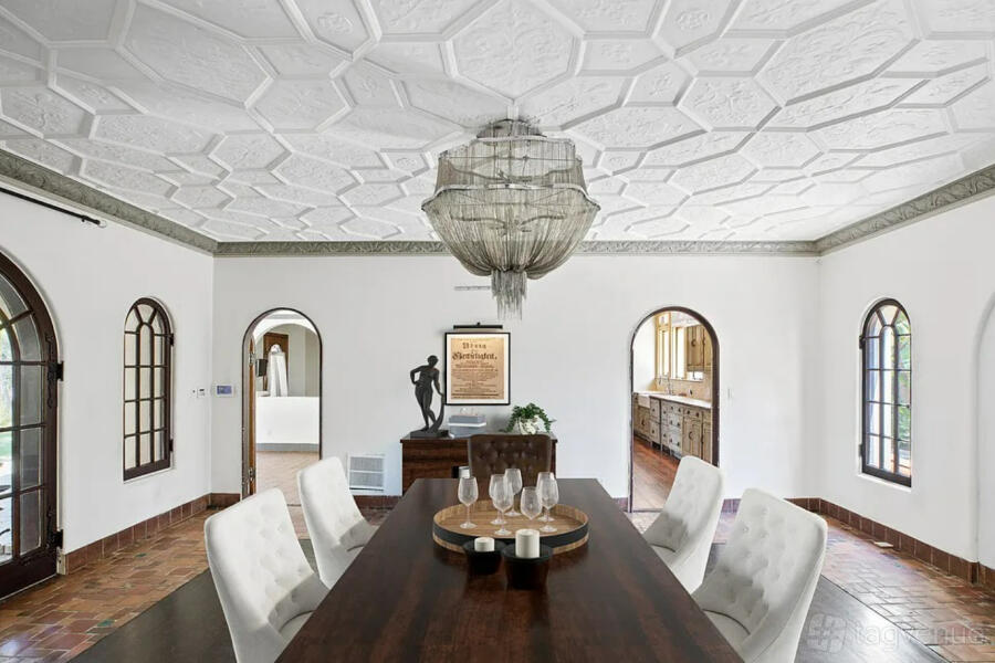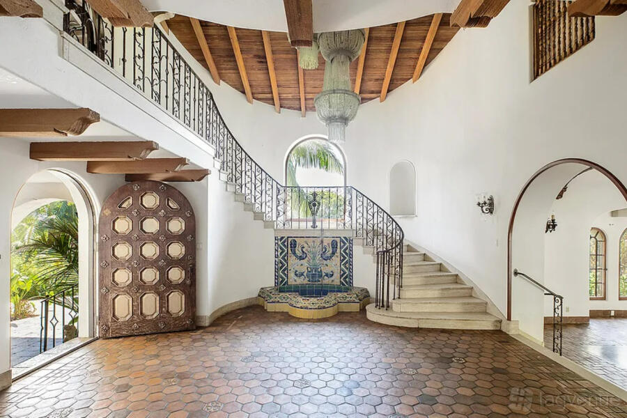 The original 5-bedroom, 4.5-bathroom true Spanish Revival mansion is in need of restoration and renovation. It is full of character and period details, including tile flooring and gorgeous ironworks.