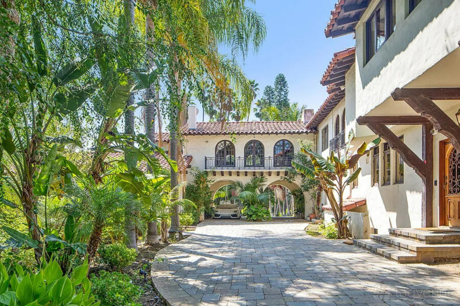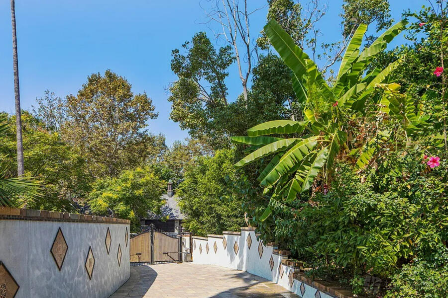 To access this amazing 1.14 acre setting of park-like grounds, huge grass, large gardens, and mature trees, enter through gates on either Sunset Boulevard or Mountain Drive.