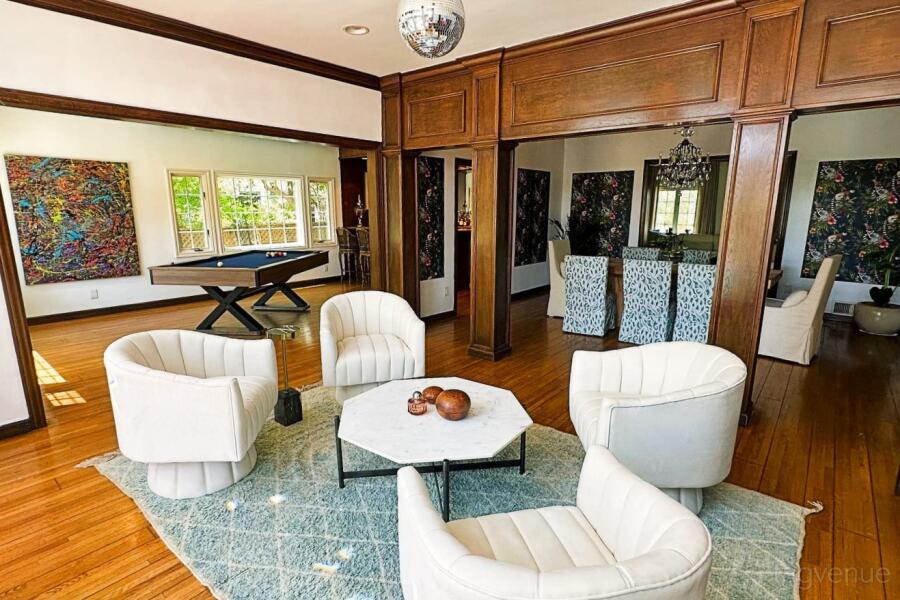For production purposes, all areas of the home are accessible, but approval in writing is required before booking any second-floor spaces. Additionally, relevant permits and insurance are mandatory.