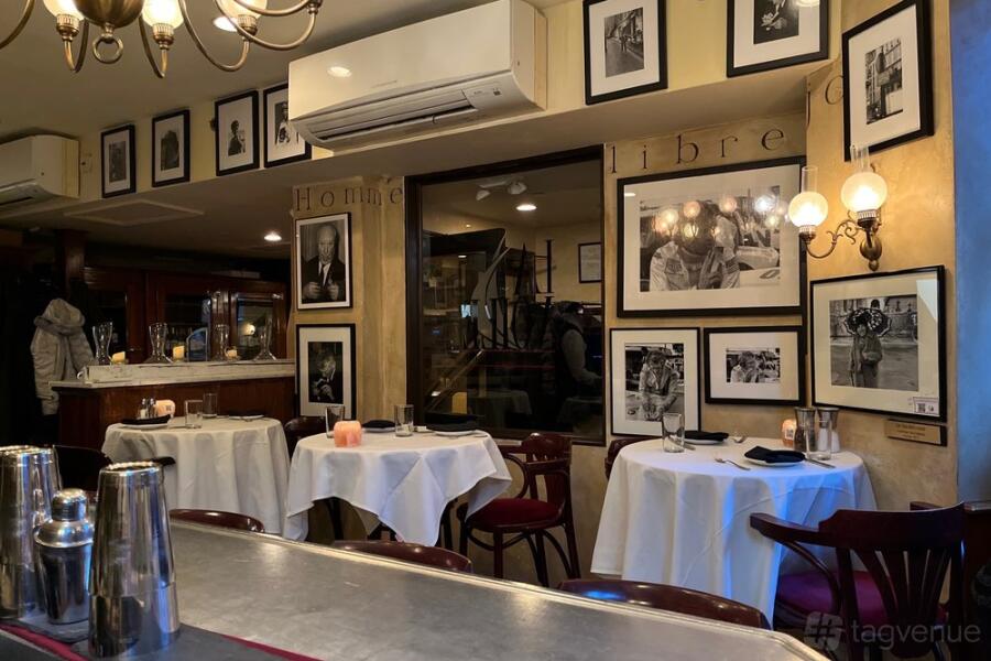 Everything was brought over… the zinc bar, the tables, and chairs, the wooden wine fridge (an old Butcher’s fridge), the marble console, the vintage chandeliers, sailing pictures, the entrance door… even the staff! you can admire on the walls the unique and private collection of Pierre’s work, From Dali to Steve McQueen, through Catherine Deneuve and Hubert Beuve-Méry, your eyes won’t stop hopping from one picture to another.
