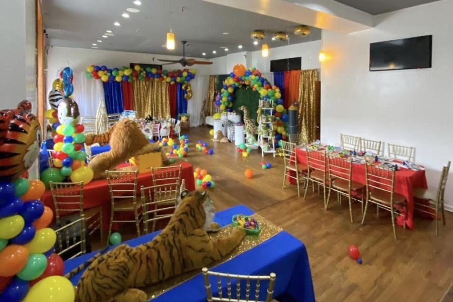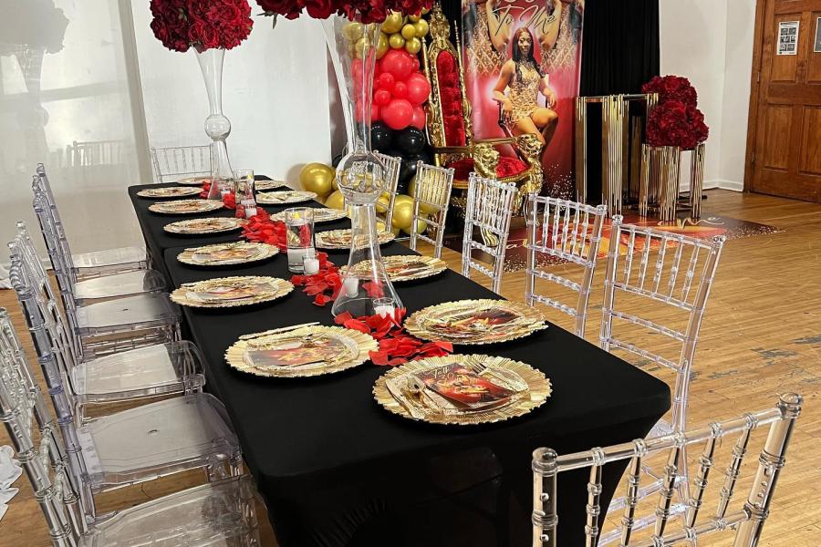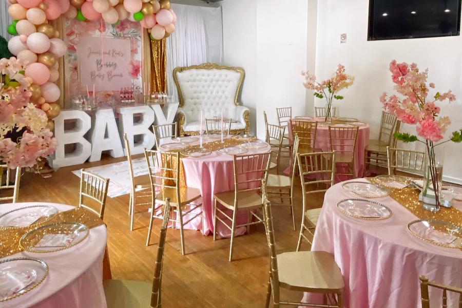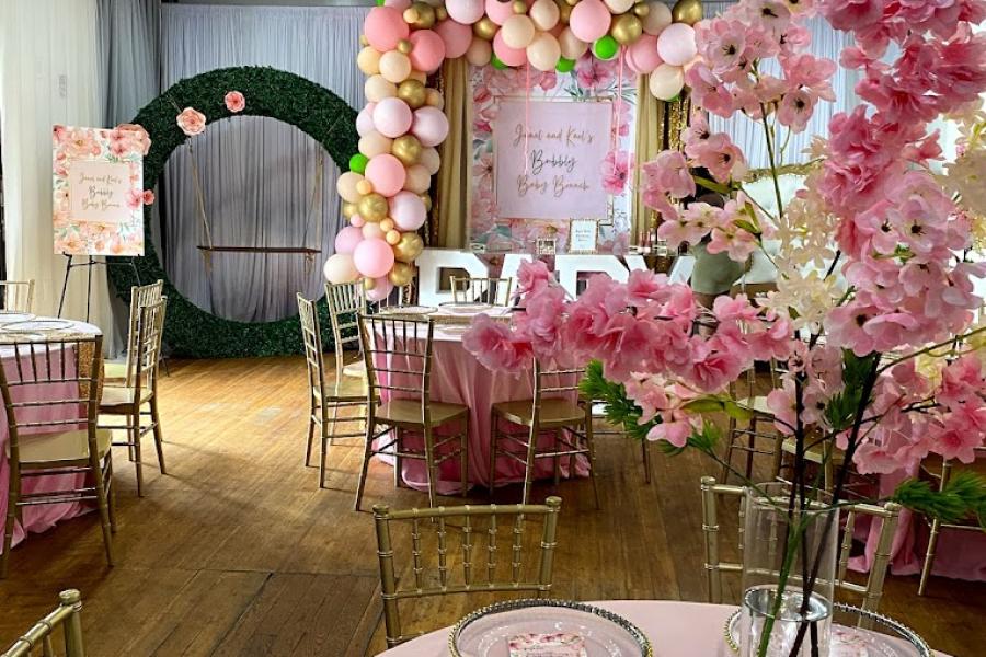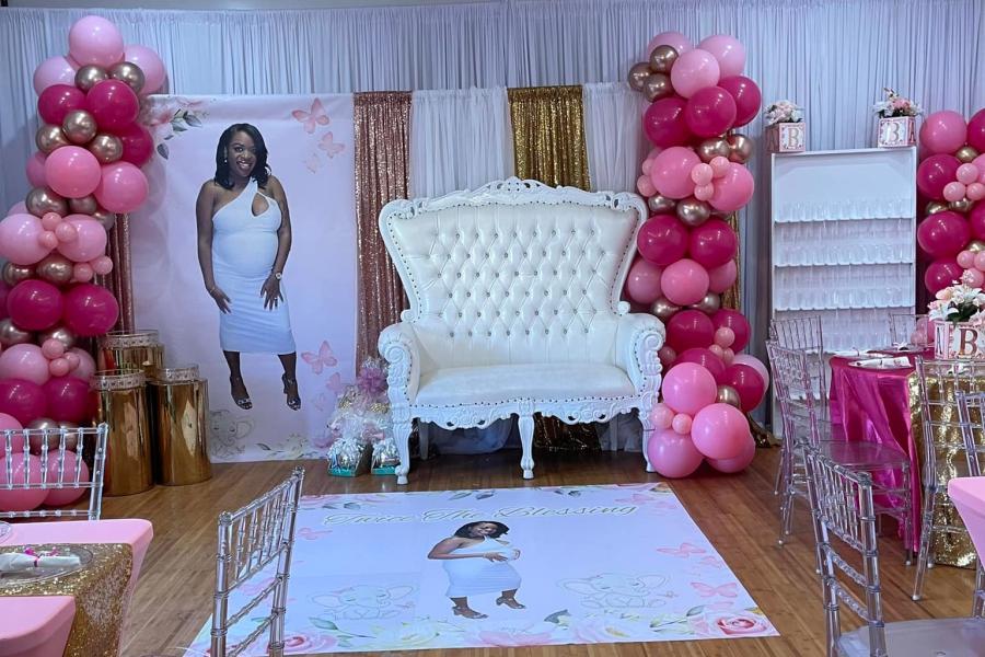 Our packages are designed to elevate your experience, offering everything from throne chairs to custom backdrops, draped walls, vibrant floor vinyls, stunning centerpieces, and more. Whatever your theme or style, we have the tools to bring it to life. Additionally, our fully equipped kitchen and allowance for outside catering ensure that your culinary desires are met with excellence.