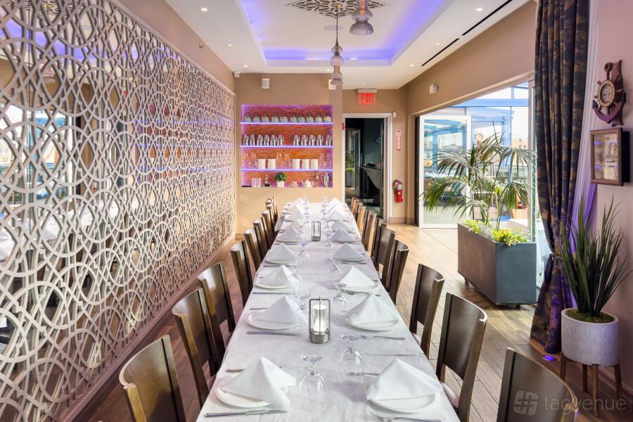 The restaurant features a private VIP Room with its own terrace, and a Main Dining Room with an additional terrace, designed to accommodate larger events and performances.