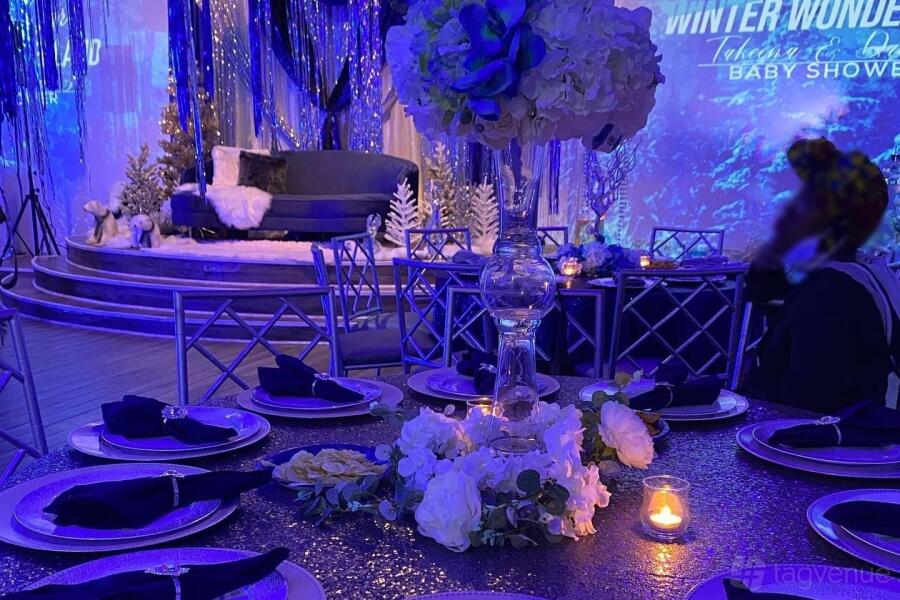 The venue comes with many useful amenities. It includes a well-equipped kitchen, a bar area, and a buffet serving space, giving you the flexibility to either bring your own catering or use their catering options. There are also private rooms available, including a VIP suite with its own restroom, ideal for special guests or private meetings. The venue can comfortably seat up to 200 guests with various arrangements, making it suitable for dinners, receptions, and other gatherings.