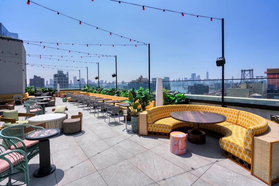 It features an indoor-outdoor lounge and cocktail bar that created comfort to guests with breathtaking views of the Williamsburg Bridge, the East River, and the iconic Lower Manhattan skyline. The space combines contemporary Indo-Aussie style with the fancy energy of Brooklyn, creating a unique and inviting atmosphere.