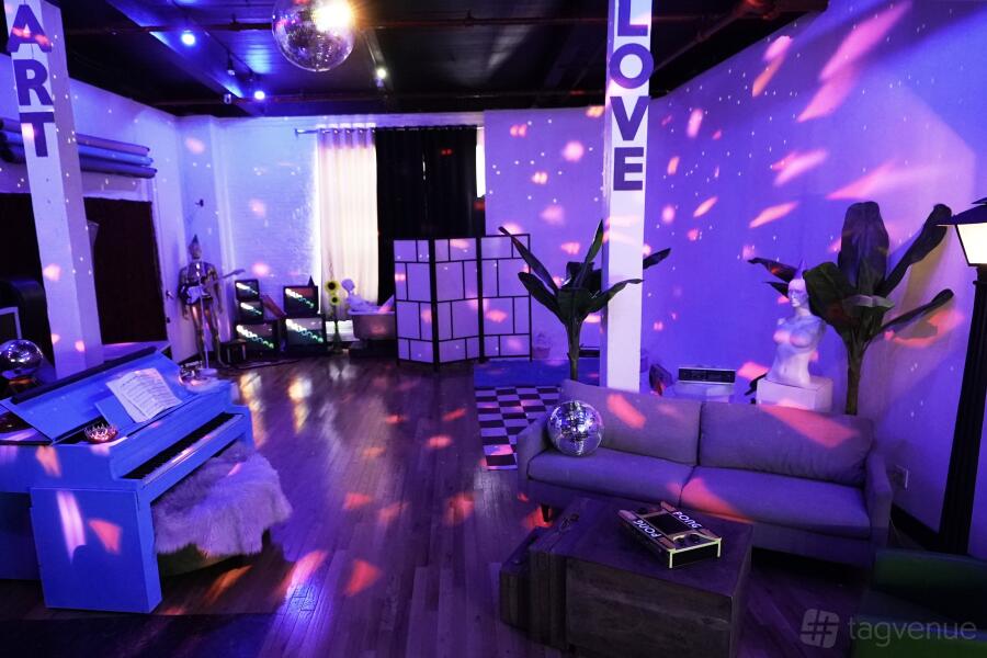 Our space is instagrammable and fun. During the day, large windows and skylights fill the space with natural light, creating a bright and airy atmosphere. At night, enjoy our RGB ceiling lights, large disco ball and DJ laser light show.