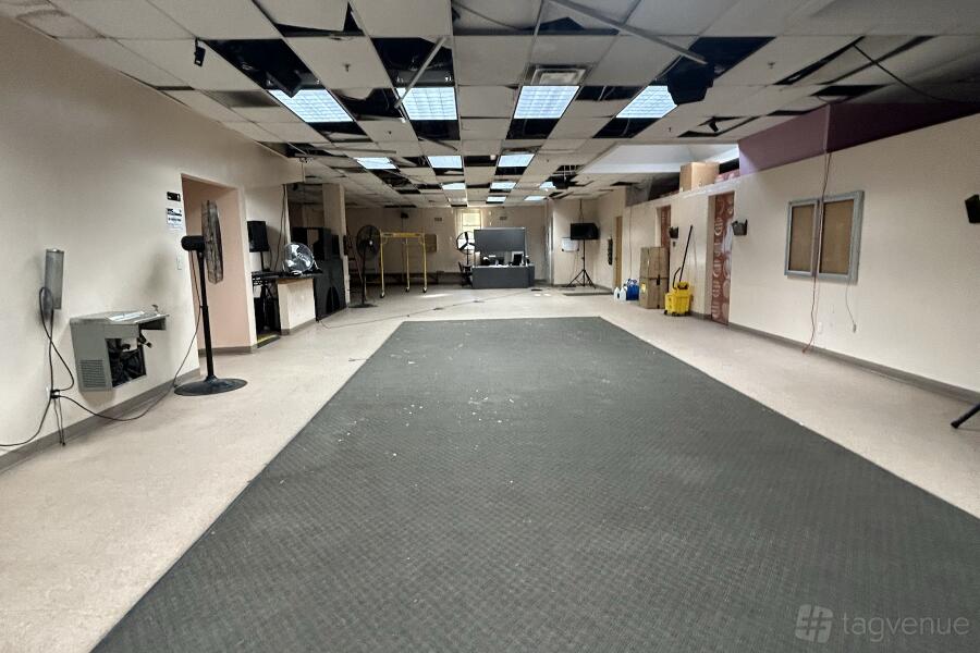 The ground level includes a 16 ft high ceiling area and a bar that is fully stocked and functioning. A stairway leads to an equally large office space on the second floor with the ceiling being lowered and cubicles being constructed. The venue is run by the nonprofit organization Queer Nightlife Community Center.