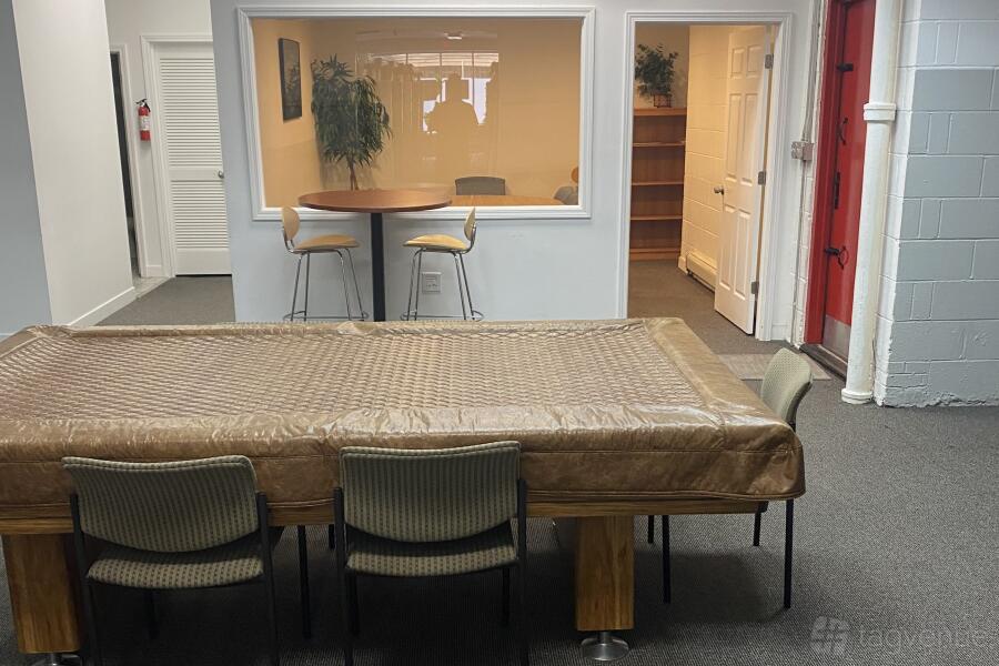 Embrace the freedom to choose your ideal workspace inside. Two meeting rooms await your collaborative endeavors. There is an intimate space for up to 8 people, as well as a larger room that can accommodate up to 40 individuals. The larger room is strategically positioned adjacent to the shared kitchen, allowing for seamless transitions from brainstorming sessions to refreshments.