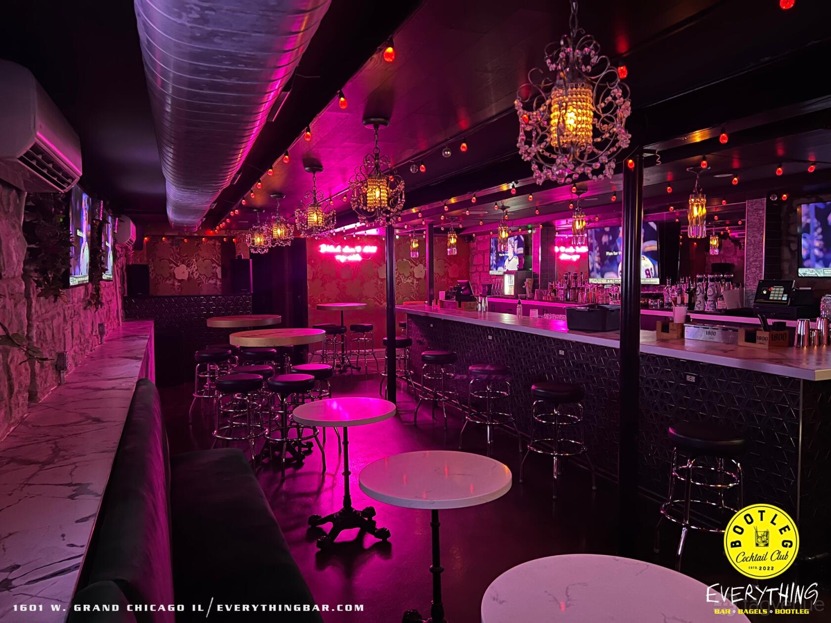 Located in the heart of West Town at the corner of Ashland and Grand Avenue, Everything Bar features two bars, a spacious backyard patio, and a cozy sidewalk cafe. Whether you're looking to host a small gathering or a larger party, Everything Bar has the perfect setting for you. Its unique layout and relaxed atmosphere make it the perfect place to unwind and make unforgettable memories.