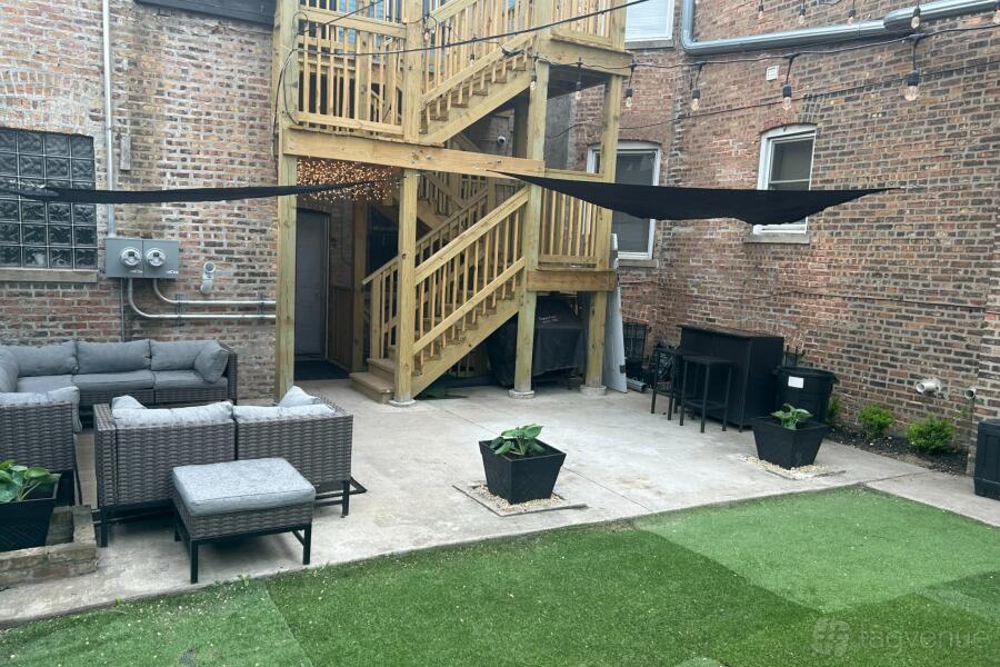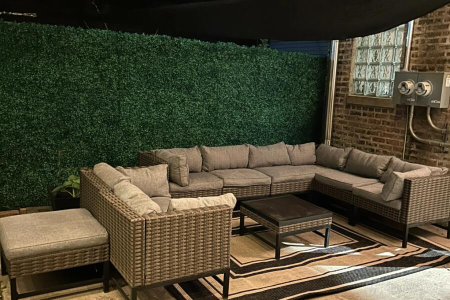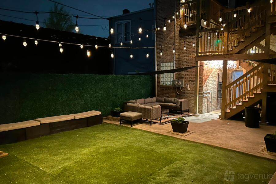Outdoor Speakeasy Style Lounge is a perfect space of your special celebrations outside. Day parties, live performances, baby showers, birthday parties, outdoor movie nights, and small weddings all work really well in this space.