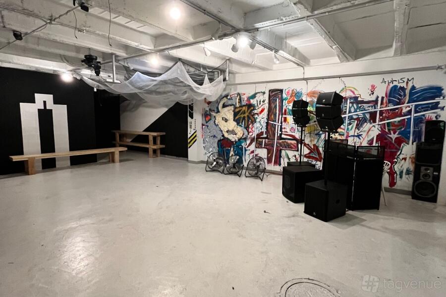 The venue features an open layout, professional PA sound system, general lighting, and bold street art, giving you full creative freedom to make the space your own, perfect for a micro-rave, launching a product, filming your next reel, or throwing a birthday.