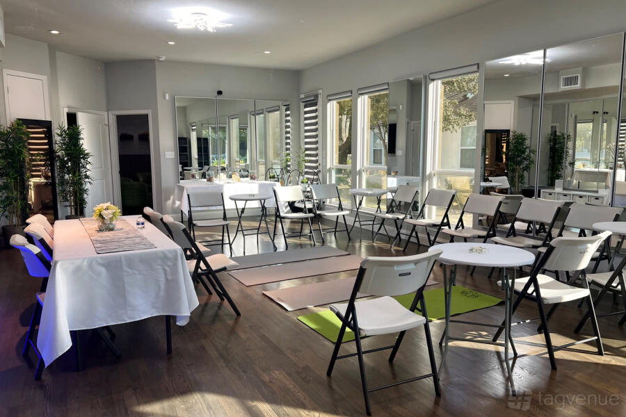The studio provides flexible layouts for various types of events, including wellness workshops, meditation sessions, and intimate social gatherings. The open floor plan allows for versatility in setups, while the studio's natural lighting enhances the atmosphere, perfect for photo shoots or calm evening gatherings.