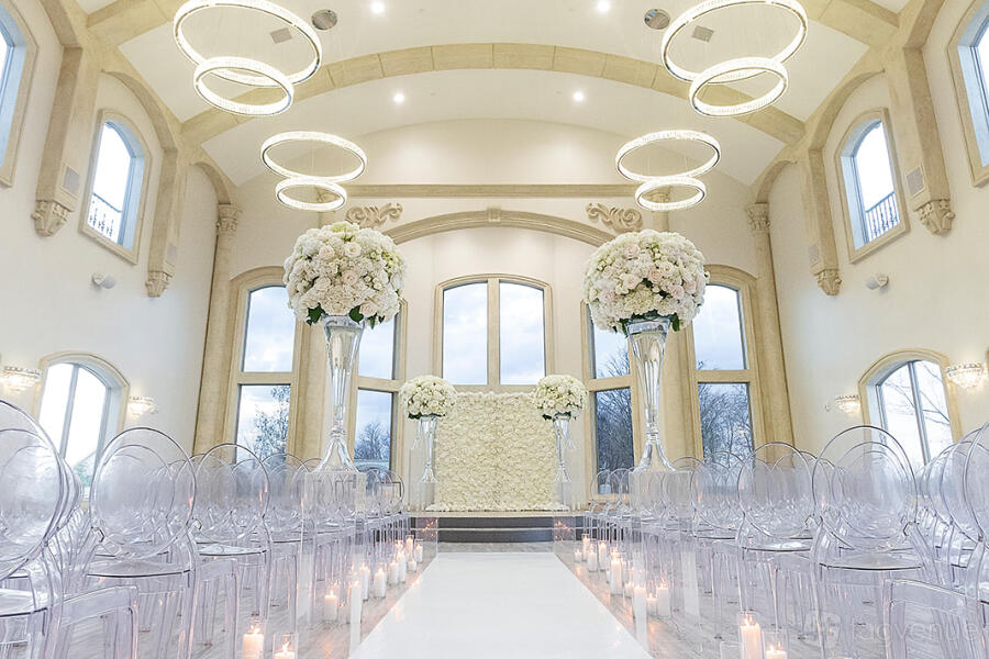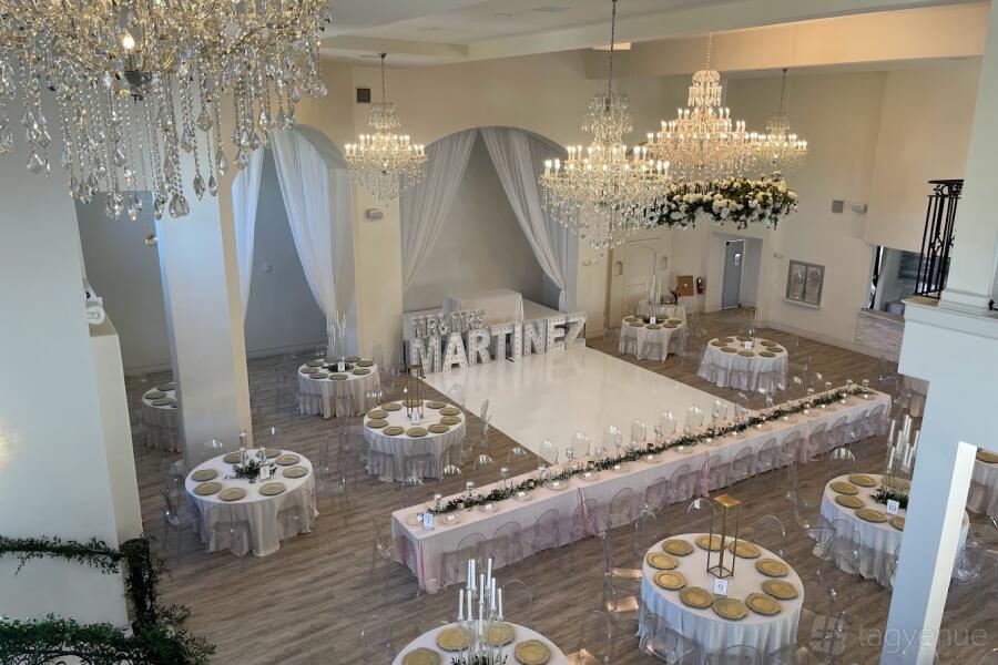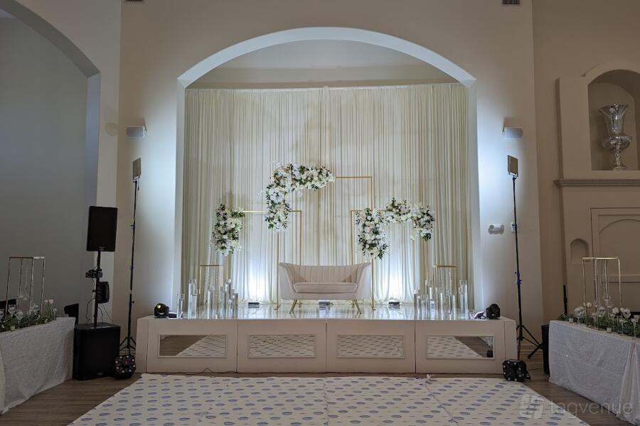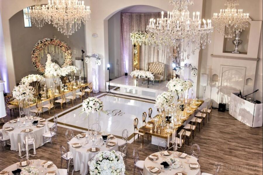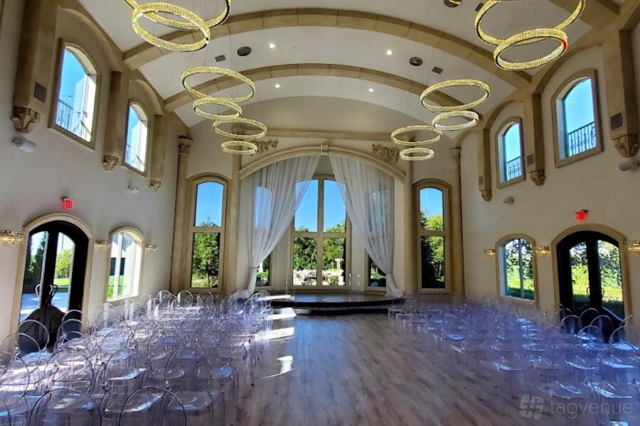 From the moment you enter, the grandeur of Knotting Hill Place envelops you. The stunning, spacious ballroom, adorned with opulent chandeliers and state-of-the-art lighting, sets the stage for an unforgettable reception. The walls, elegantly detailed with fine craftsmanship, add a touch of royalty to the ambience. The venue's large windows bathe the space in natural light, offering spectacular views of the lush, manicured gardens that surround the property.