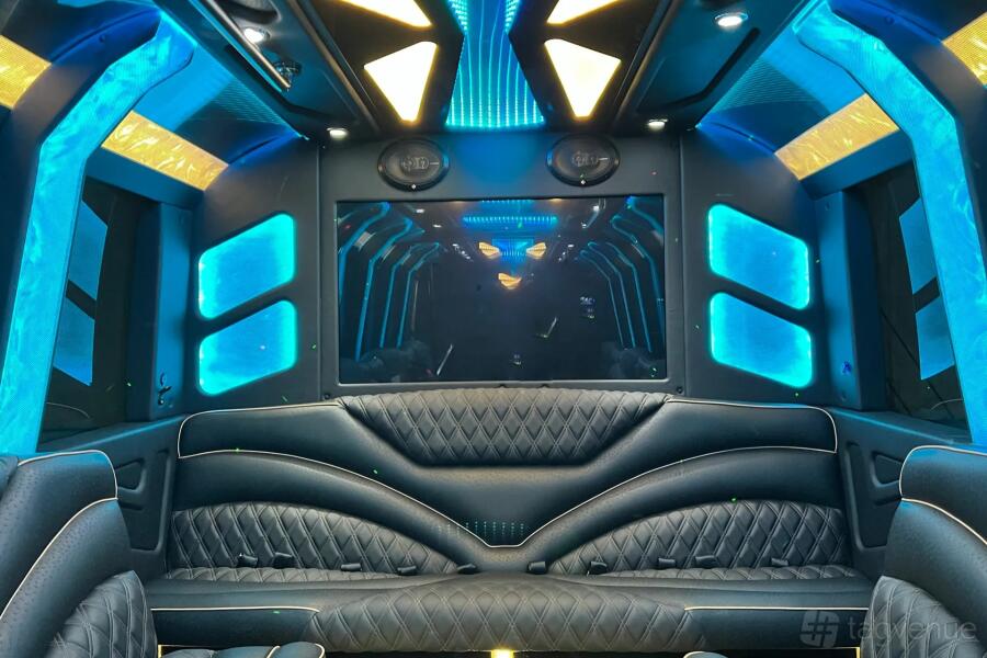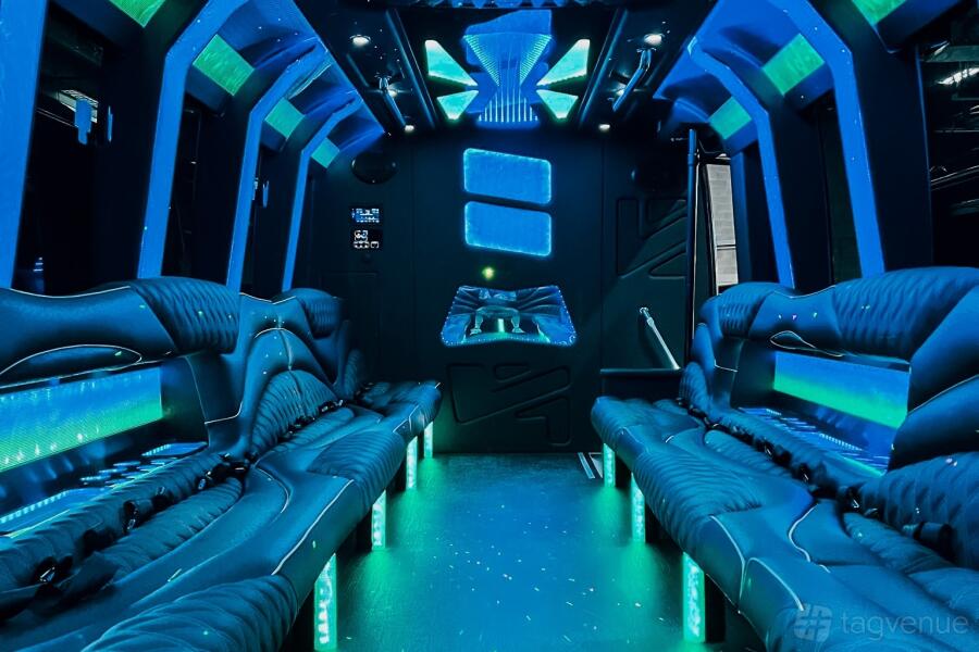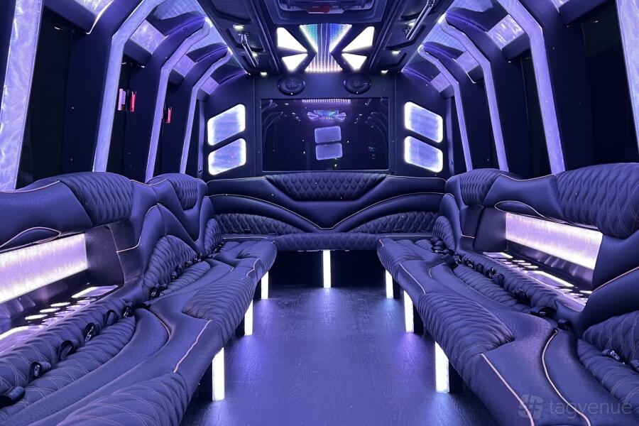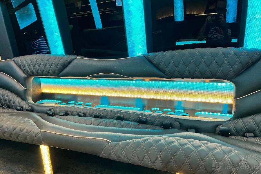 Step into Premier Transportation's Limo Bus, where luxury meets capacity, with seating for up to 23 people. This stylish and spacious vehicle is tailor-made for unforgettable parties and celebrations. Its sleek exterior and inviting interior create an ambiance of sophistication and comfort from the moment you board. Inside the Limo Bus, ambient li...