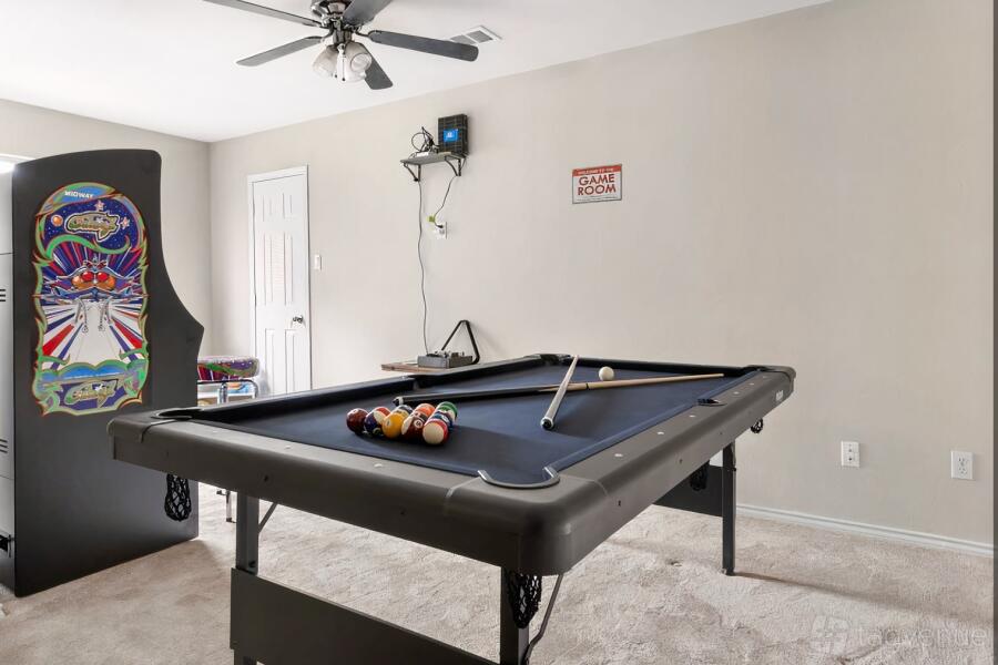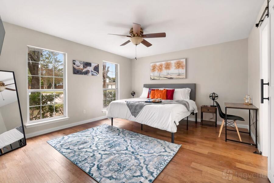 The venue offers a stylish and comfortable setting that combines rustic charm with modern elegance. It features natural light, modern furniture, warm and soft colors, well-equipped rooms. The house has 3 bedrooms, living room, kitchen, dining room, gym, laundry room, game room, backyard, BBQ, EV charger.