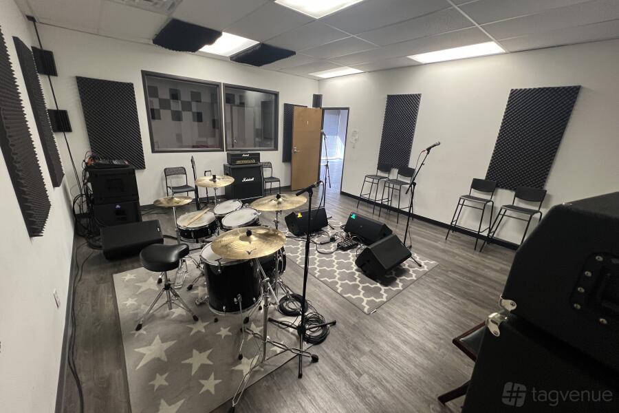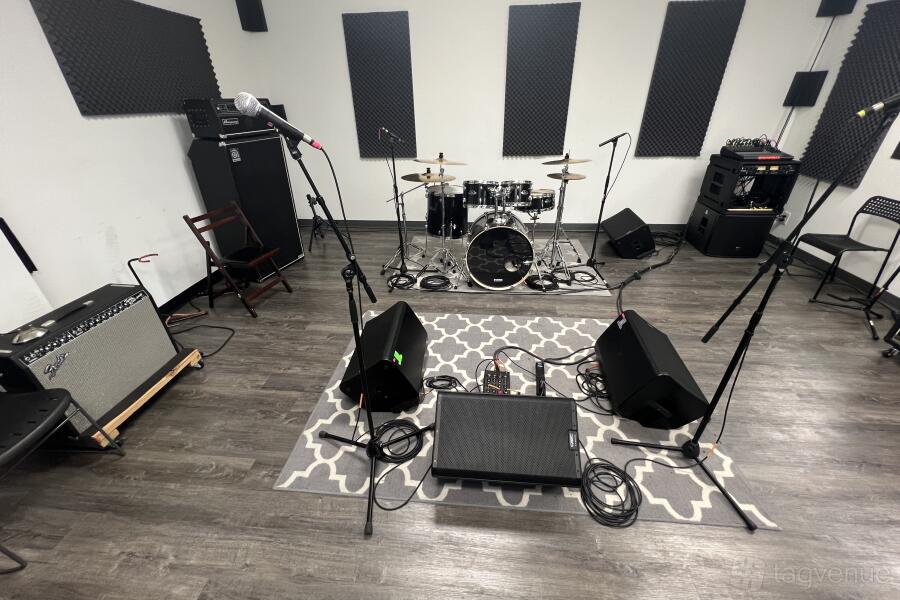 Each rehearsal space includes access to our lounge, gear and snack vending machines, clean restrooms, free Wi-Fi, cool A/C, and plenty of on-site parking.