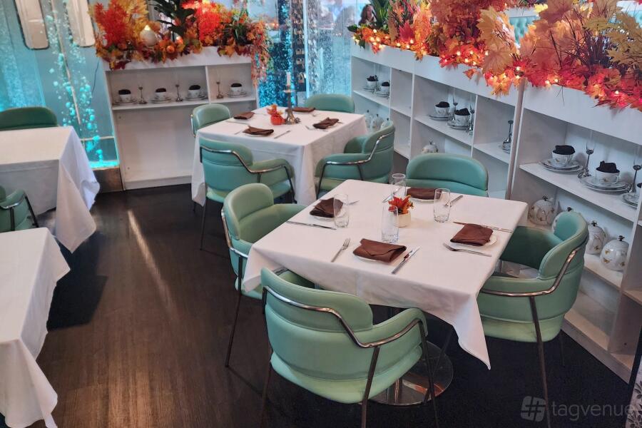 Our seasonal décor, inspired by Tiffany's timeless elegance, adds a unique touch to any occasion, making it an ideal backdrop for wedding receptions, birthday celebrations, baby showers, or corporate gatherings.