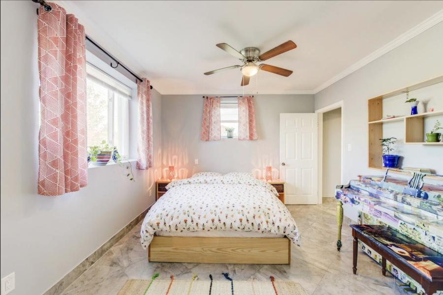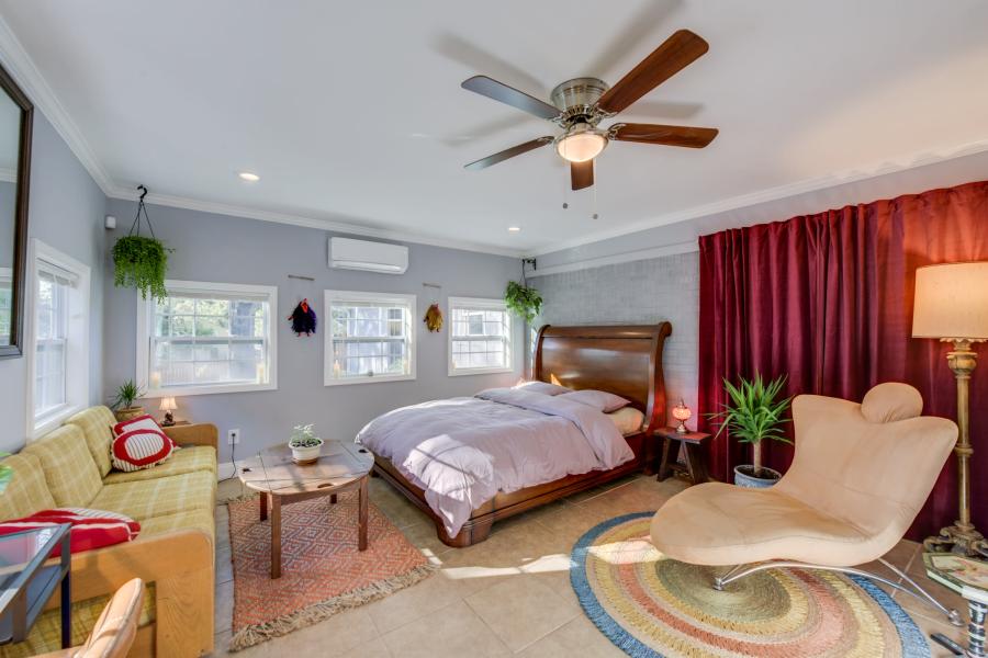 While the expansive backyard is not initially included, it stands ready to enchant upon request, boasting an array of delightful amenities. From the picturesque chicken coop and lively inhabitants to the cozy picnic table and playful kids swing set, every corner offers a touch of whimsy and tranquility. Parking options are plentiful, with free onsite and street parking available for added convenience.