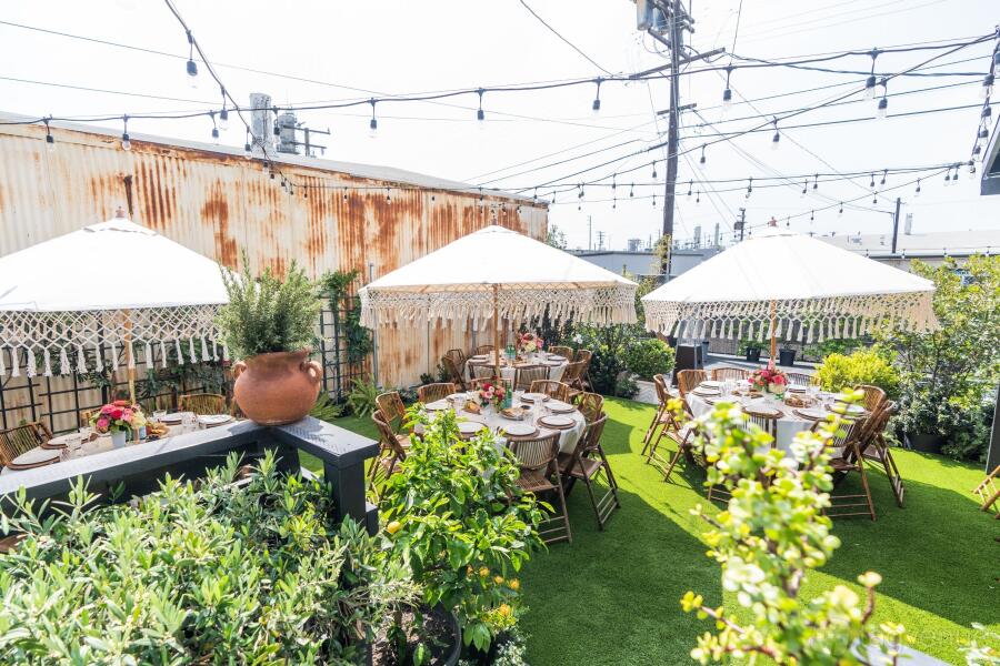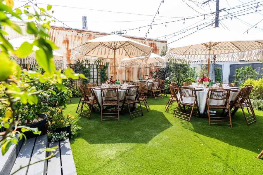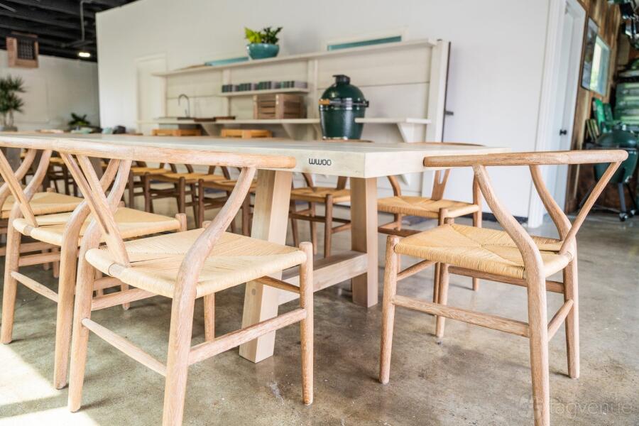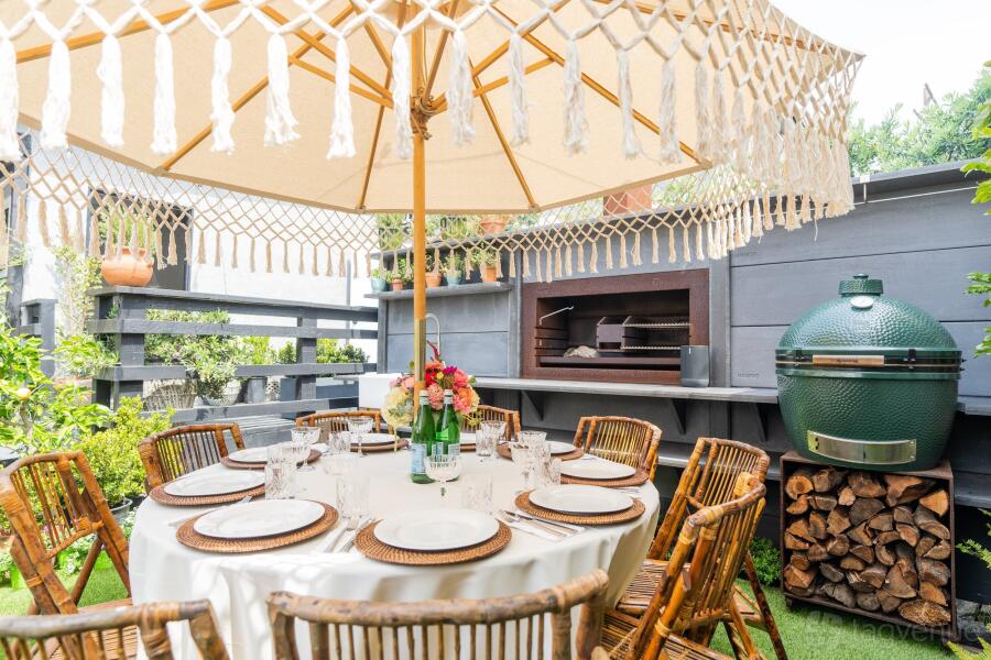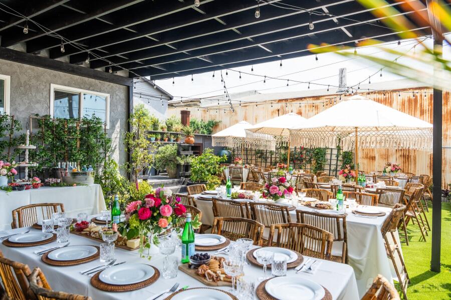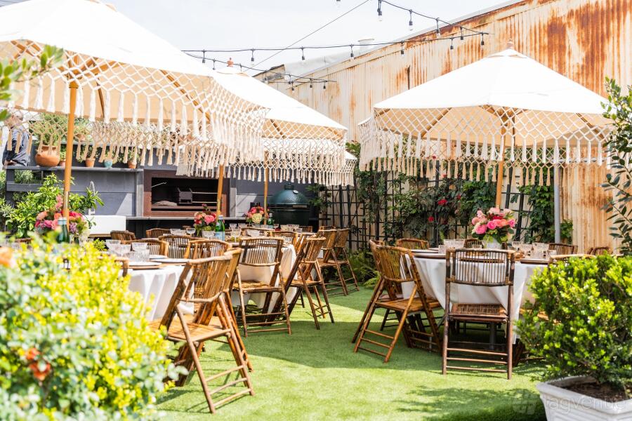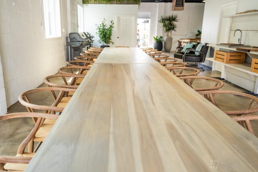 The venue features outdoor concrete kitchens and BBQs, combining style with practicality. Suitable for both business events and personal celebrations, it offers modern amenities and an open layout.