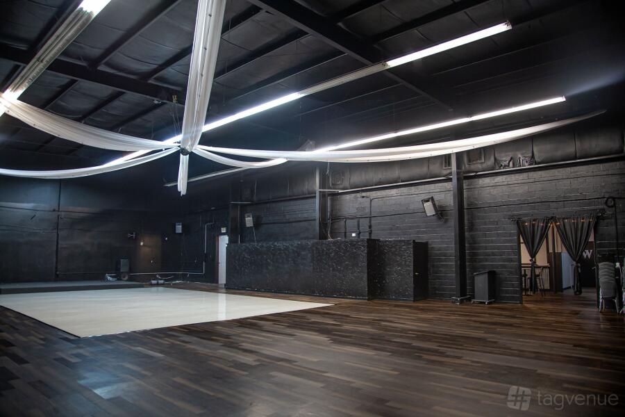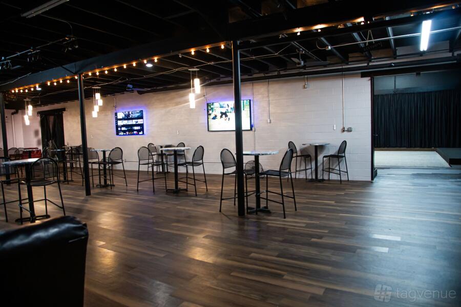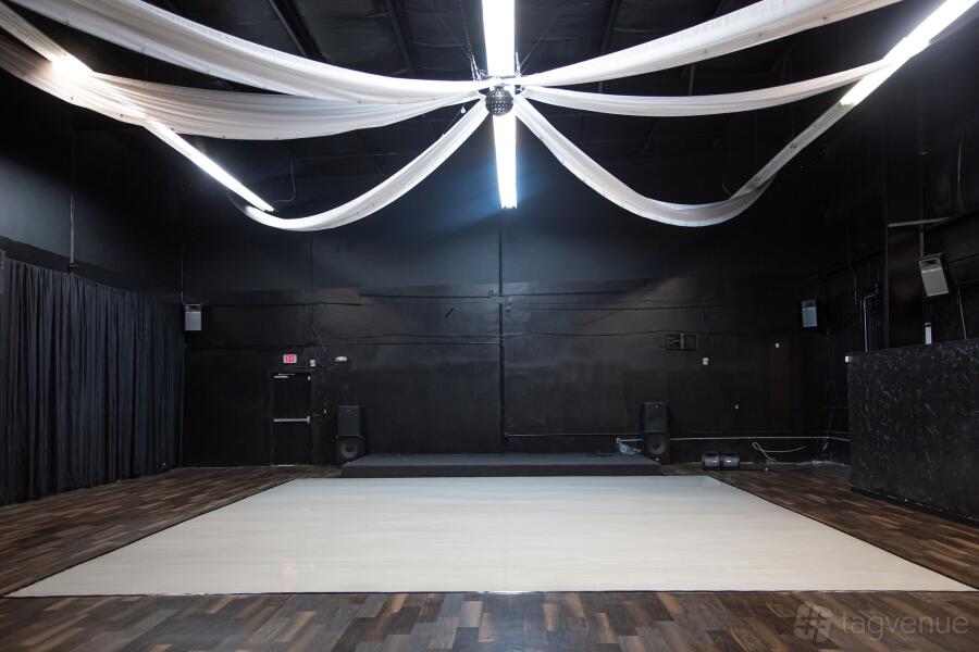 There’s a prep area, a stage, and room for seated or standing events. Great for parties, shows, or creative setups with your own layout.