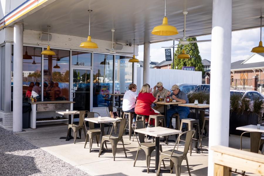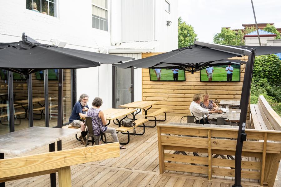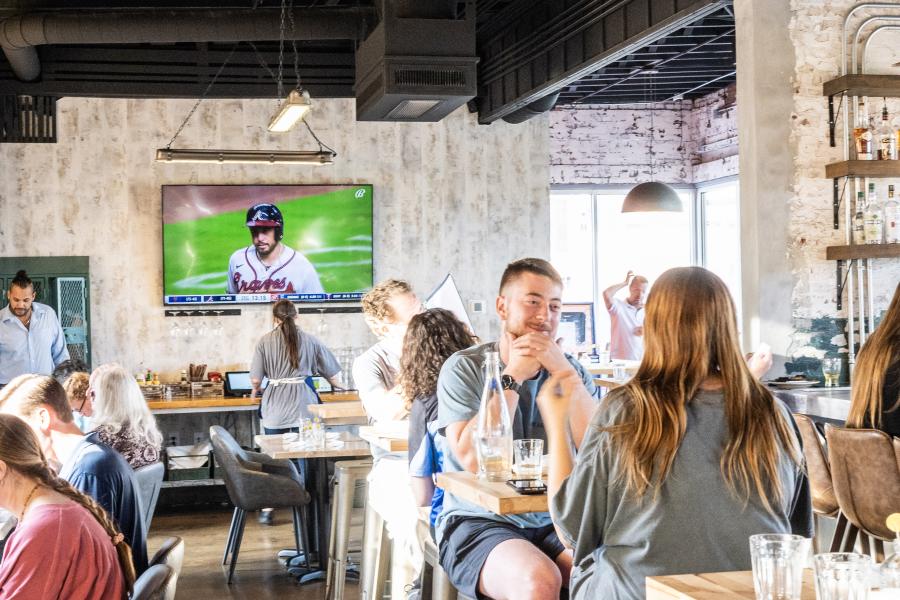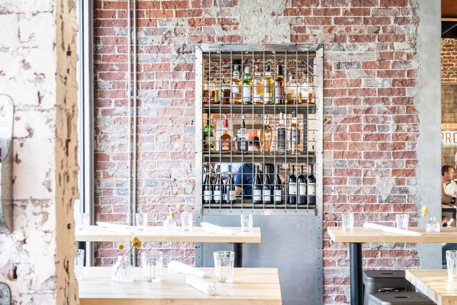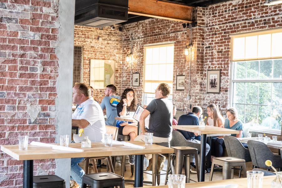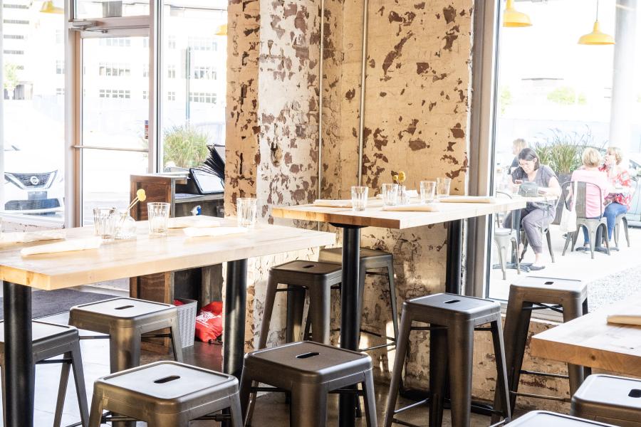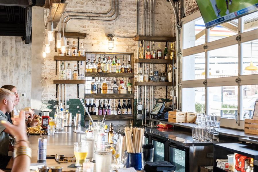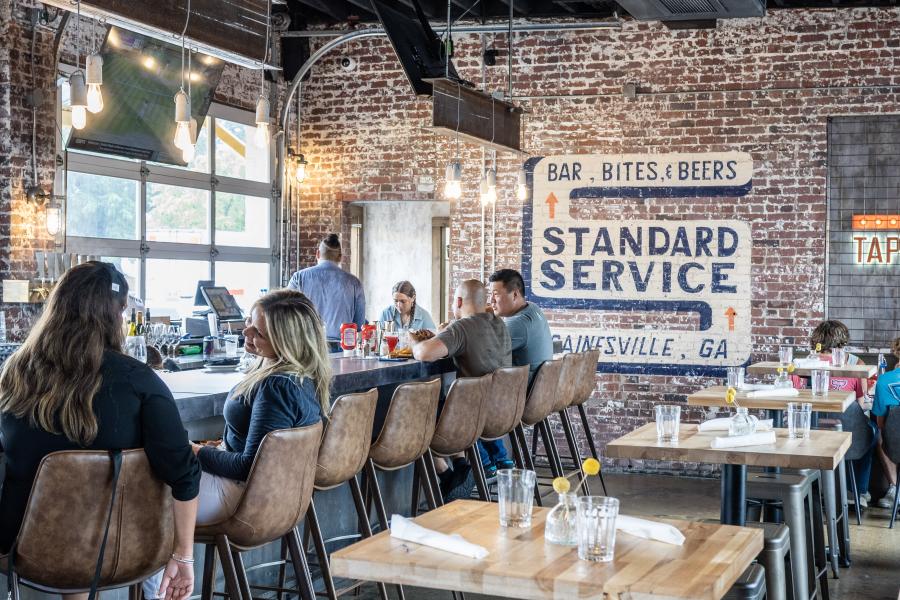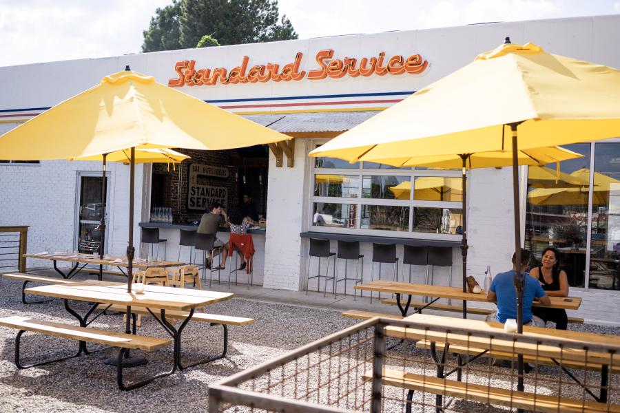 Standard Service features an expansive patio and large garage doors that can be raised for an indoor/outdoor dining experience. A taproom in the downstairs area features 50 self-serve taps offering beer and wine, TVs for sports-watching and an expansive patio, all accessible via an entrance at the back of the building. In the taproom, guests can check in with their ID and credit/debit card. Once a tab is set up, it is linked to a wristband, allowing guests to unlock a tap and pour as little or as much (up to a pint) as desired, charging only for what’s poured. There are safeguards in place, so the tap wall can be enjoyed responsibly. When done, guests drop off their wristband, verify their tab and check out.