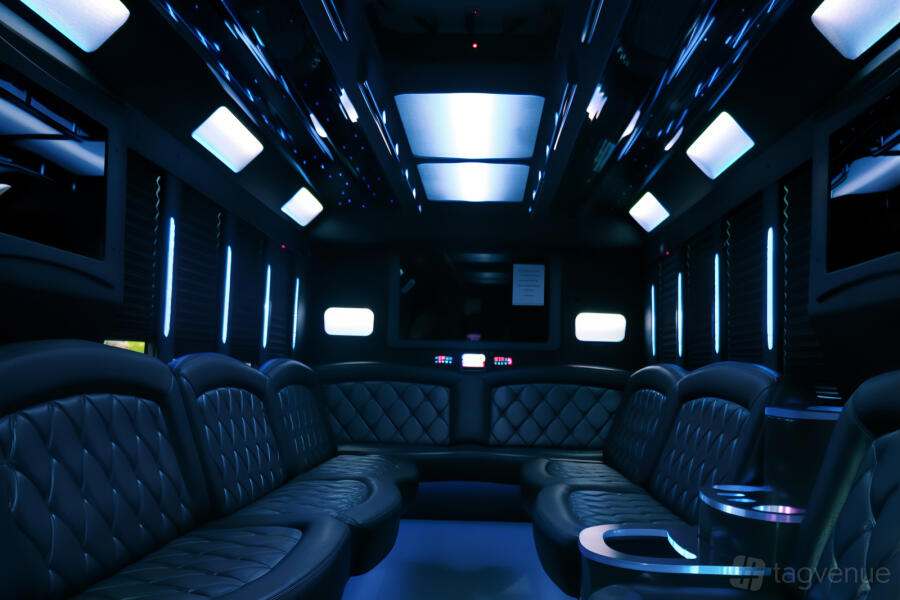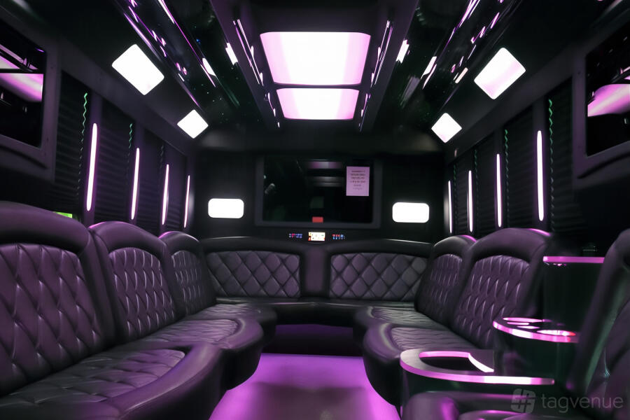 The facility boasts a sleek and modern architectural design with a spacious interior showcasing stylish, contemporary decor. The setting is organized into distinct areas and zones, each tailored to facilitate easy access to our extensive fleet, including luxury party buses, limousines, charter buses, and shuttles.