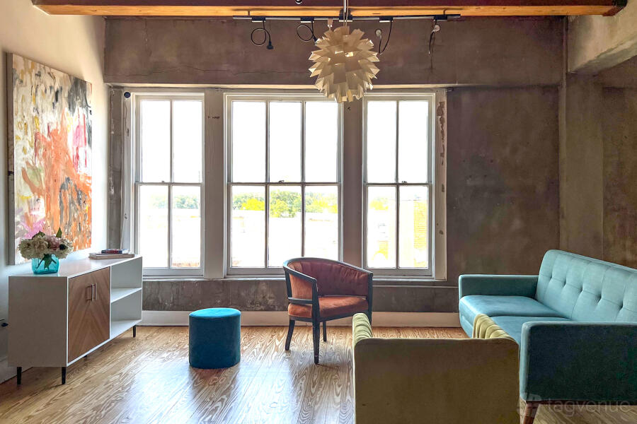 Located in the easily accessible warehouse district, our studio is surrounded by art galleries, original exposed brick/wood beams, a beautiful downtown view, and incredible food close by for after-session meetings or lunch breaks.