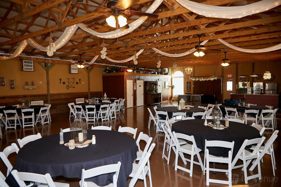 Boasting a spacious, 3200 sq. ft. venue, County Line Event Center can comfortably host up to 130 guests indoors. The wooden floor, stage, dance floor, sound system, and bar are meticulously arranged to create the perfect backdrop for your celebration. Adorned with rustic country decor, including mason jars, lanterns, and burlap, our venue exudes warmth and character. At County Line Event Center, our friendly and professional staff are dedicated to ensuring your satisfaction and happiness. From setup to clean up, we handle every detail, allowing you to savor your wedding day without stress. Collaborate with our team to tailor a personalized and unique wedding experience that reflects your style and personality.