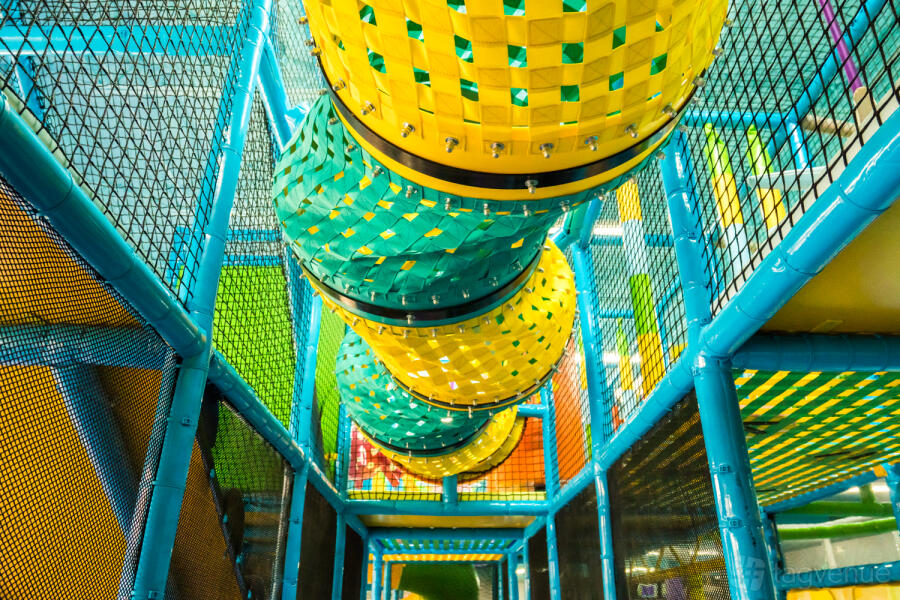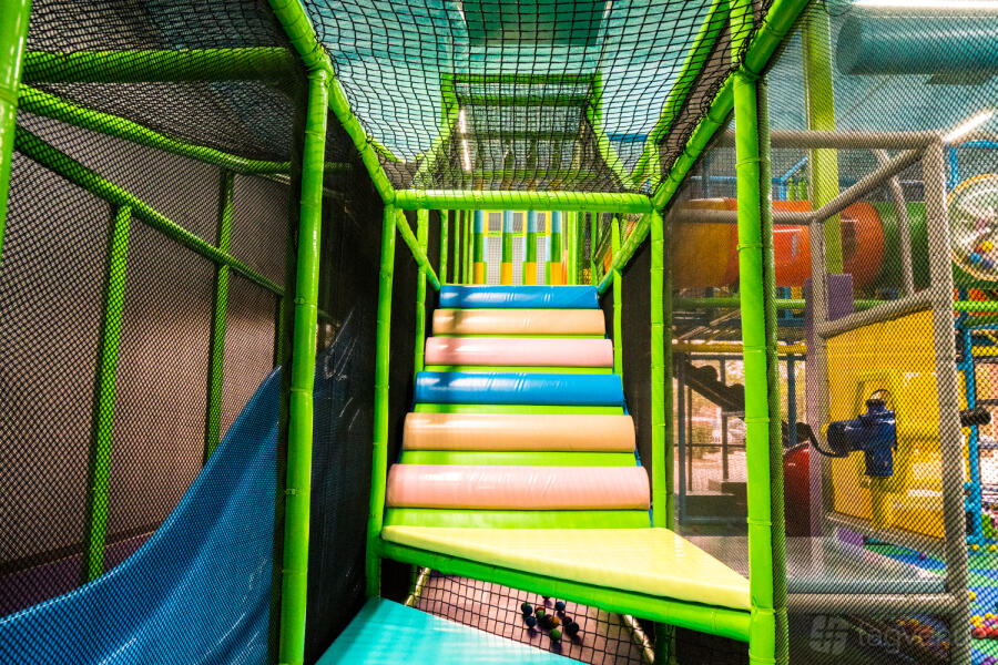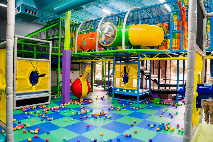 The facility boasts a range of zones tailored for different age groups, featuring innovative play structures, interactive games, and educational equipment, all set within a colorful, engaging environment.
