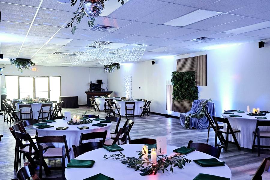 Our venue rooms are all uniquely styled with sleek lighting to set the mood for your special day.