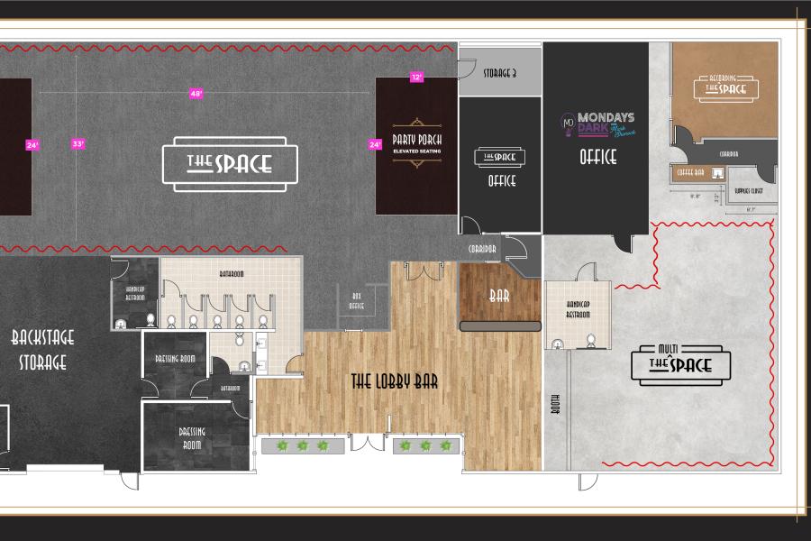 Available for short-term rentals, event bookings and live performances, the complex features: raw theater/event space with state-of-the-art staging, AV, a customizable floor plan and connected box-office operations; a broadcast-quality and stylishly decorated recording studio; and a chic, eclectic lobby and gathering space complete with a full bar.