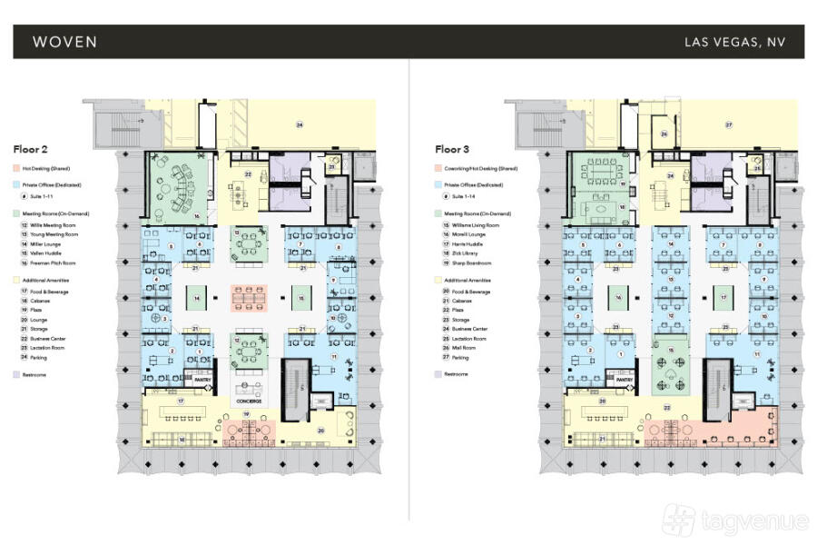 Shared: Shared workspaces with access to Woven’s conference and meeting facilities, uncommon common areas, craft food & beverage services, and select amenities.