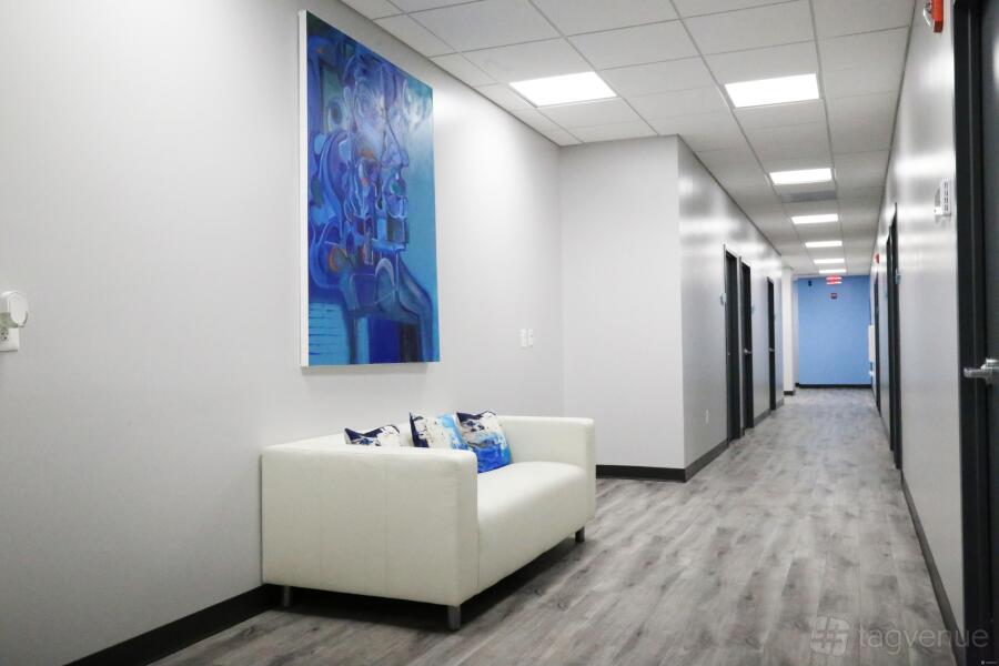 Our coworking building features an excellent event space, complete with a partial kitchen in a shared area. While it includes a microwave and a refrigerator, please note that it does not have a stove or oven.
