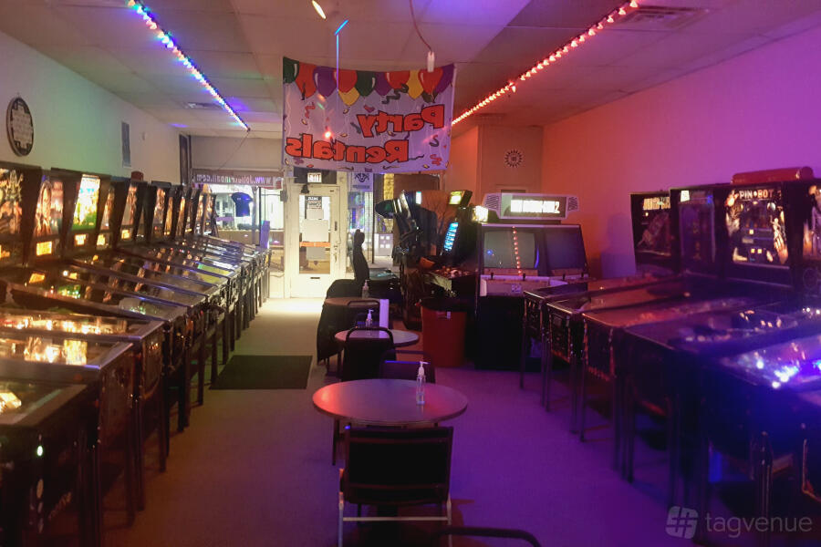 This venue provides a fun retro arcade experience that can be tailored to parties, team-building events, or corporate gatherings. 50 games/machines are set to unlimited free play; no coins, tokens, or play cards required! Most games are from the 1980s and 1990s, including video arcade, basketball, Skee-Ball, foosball, air hockey, and pinball.