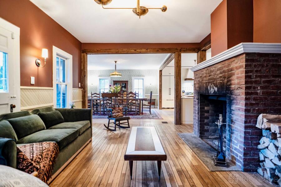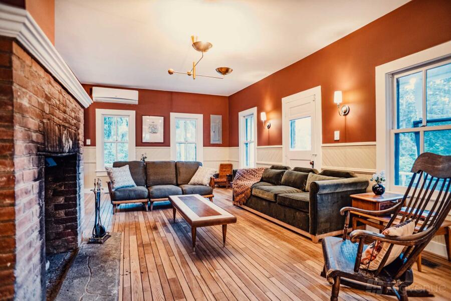 The restored Farmhouse is a place to stay in for 30 people with a gourmet chef's kitchen and access to premium recreational facilities, including a pool, wood-burning sauna, and hot tub.