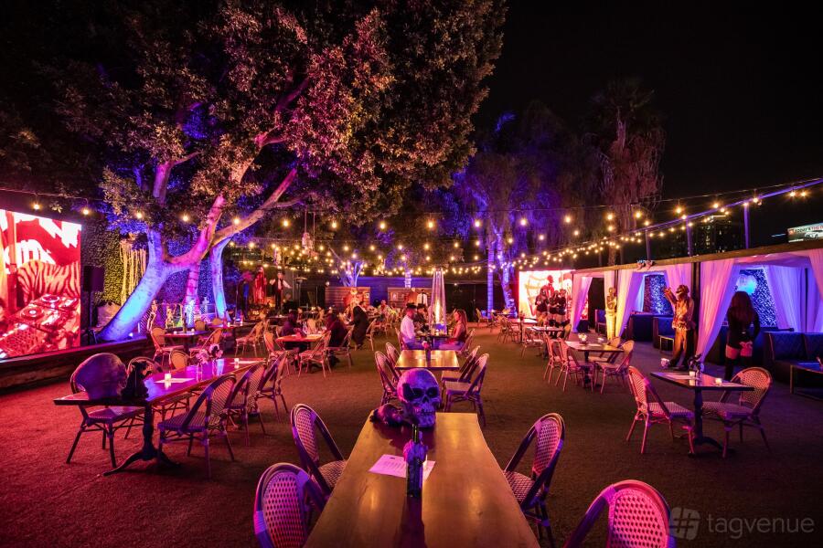 An expansive main floor, the upstairs VIP room, a full kitchen, and one of the few outdoor patios in Hollywood make the venue a striking choice for film shoots, charity galas, corporate events, premiere parties, and award shows.